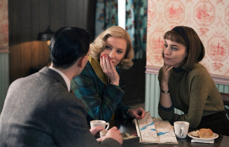 서로를, 혹은 한쪽이 다른 한쪽을 바라보는 캐롤과 테레즈는 아름답다. 함께 같은 사람이나 사물을 바라보는 캐롤과 테레즈는, 다른 느낌으로 아름답다. 두 사람이 테이블에 앉아 미스터 터커에게 관심 없는 눈길을 건네는 장면을 엄청 좋아한다. 테레즈는 캐롤이랑 있으니까 즐거워서 그냥저냥 상대해 주고, 캐롤은 테레즈를 제외한 그 공간의 인간들은 아무것도 아니라는 듯 엄청 대충 대하며 무시하는데, 뭔가 공범 같고. 두 번째 관람부터는 미스터 터커의 정체를 아는 상태에서 저놈새키하면서 보게 되지만, 그 장면 자체의 분위기는 여전하다.