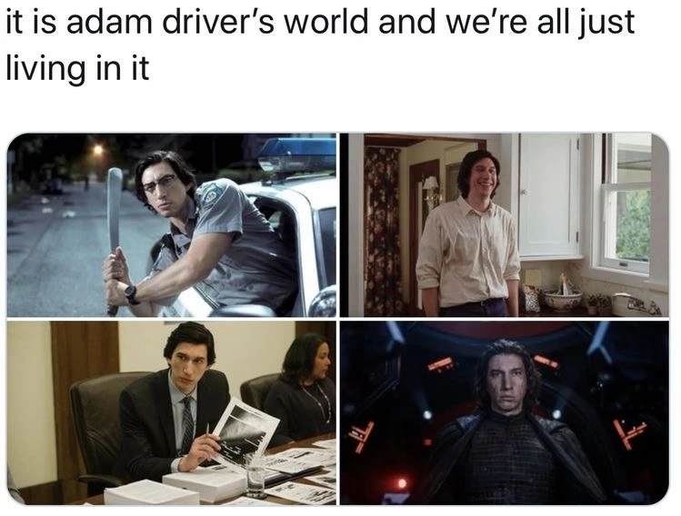 그는 영원히, 스타가 아닌 배우의 자리에 있을 것이다. 최근 GQ 매거진에 “Adam Driver Doesn’t Care If You Like Him아담 드라이버는 당신이 자길 좋아하든 말든 신경 쓰지 않는다”라는 기사가 올라왔다. 이 글을 써야 했기에 부러 읽지 않았지만, 제목만 보고 세차게 고개를 끄덕였다. [“당신을 사랑하는 것 같아요.”라고 말하며 사랑이 하나도 안 담긴 눈빛을 보내던 크리스를 보고, 벤 위쇼를 약간 더 사랑하게 되었다.] <리틀 조>(2019) 감상에 적은 문장이다. <라스트 듀얼>과 <아네트>를 본 나는, 자크 르 그리와 헨리 맥헨리를 끔찍해하며, “자길 좋아하든 말든 신경 쓰지 않는” 이 배우를, 그 어느 때보다 더 사랑하게 되었다.