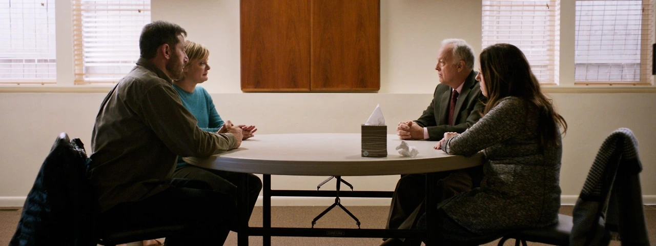 십자가가 중앙을 가르도록 마련된 테이블에 앉아 있던 네 사람은, 각자의 자리를 벗어나 물리적으로 멀어진 채로 속내를 보다 가까이 털어놓는다. 게일이 에번의 에피소드를 이야기할 때 린다는 게일이 앉았던 의자에, 리처드는 제이가 앉았던 의자에 앉아 귀를 기울인다. 타인의 ‘의자에 앉는다’는 티나게 상징적인 연출임에도 그 의미는 퇴색되지 않는다. “당신들을 용서하면 아들을 영영 잃을까 두려웠다”던 게일은 ‘당신들을 그리고 헤이든을 용서한다’고 말한다. 그 용서는 사실 그들의 몫이 아님을(신 얘기를 하자는 게 아니다) 자신들도 알고 있을 테다. 그건 <프라미싱 영 우먼>(2020)에서 캐시가 변호사를 ‘용서’했던 것처럼, 그들 자신과 상대의 내일을 위한 제스처가 아니었을까. 십자가와 테이블이 없는 한구석에서 마침내 네 사람은 ‘마지막 모먼트’를 가진다. 이후 서로를 대하는 예의는 초반의 그것과 표면적으로는 닮아 있지만, 다르다.