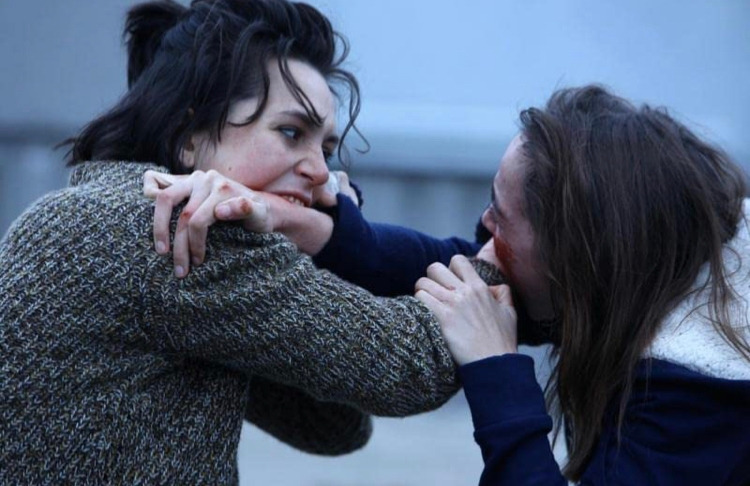 폭력의 주체는 특정 남성이 아니라 집단적으로 폭력적 ‘남성성’을 전시하는 세력이다. 쥐스틴을 1선에서 억압하는 언니 알렉시아가 여기 포함돼 있는데, 동시에 그는 털을 다듬고 화장을 하는 등 제 몸을 ‘여성적’인 것으로 만든다. 피해와 가해를 합리화하고 적극적으로 재생산하는 방식으로 적응한 케이스다. 델마의 아버지와 반대로 알렉시아는 쥐스틴의 욕망이 깨어나는 것을 돕는데, 그가 병행하는- ‘허용되는, 인위적으로 전승되는 린치’와, ‘금지된, 본능적인 육식’을 집단은 달리 받아들인다. 쥐스틴과 서로 물어뜯고 싸우며 숨겨온 본성을 드러내는 순간 그는 집단에서 퇴출되어 타자/‘괴물’로 다루어진다. 쥐스틴이 상급생들에 의해 갇혀 키스 상대의 입술을 물어뜯었을 때 역시 그러했다. 이 행위는 ‘하등한/괴롭혀도 되는 먹잇감’이었던 그를 ‘건드리면 안 되는 애’로 인식하게 만들었지만, 그 동의어는 ‘집단 내 상위 포식자’가 아니라 ‘집단에 들여서는 안 되는 열등한 위험인자’다.