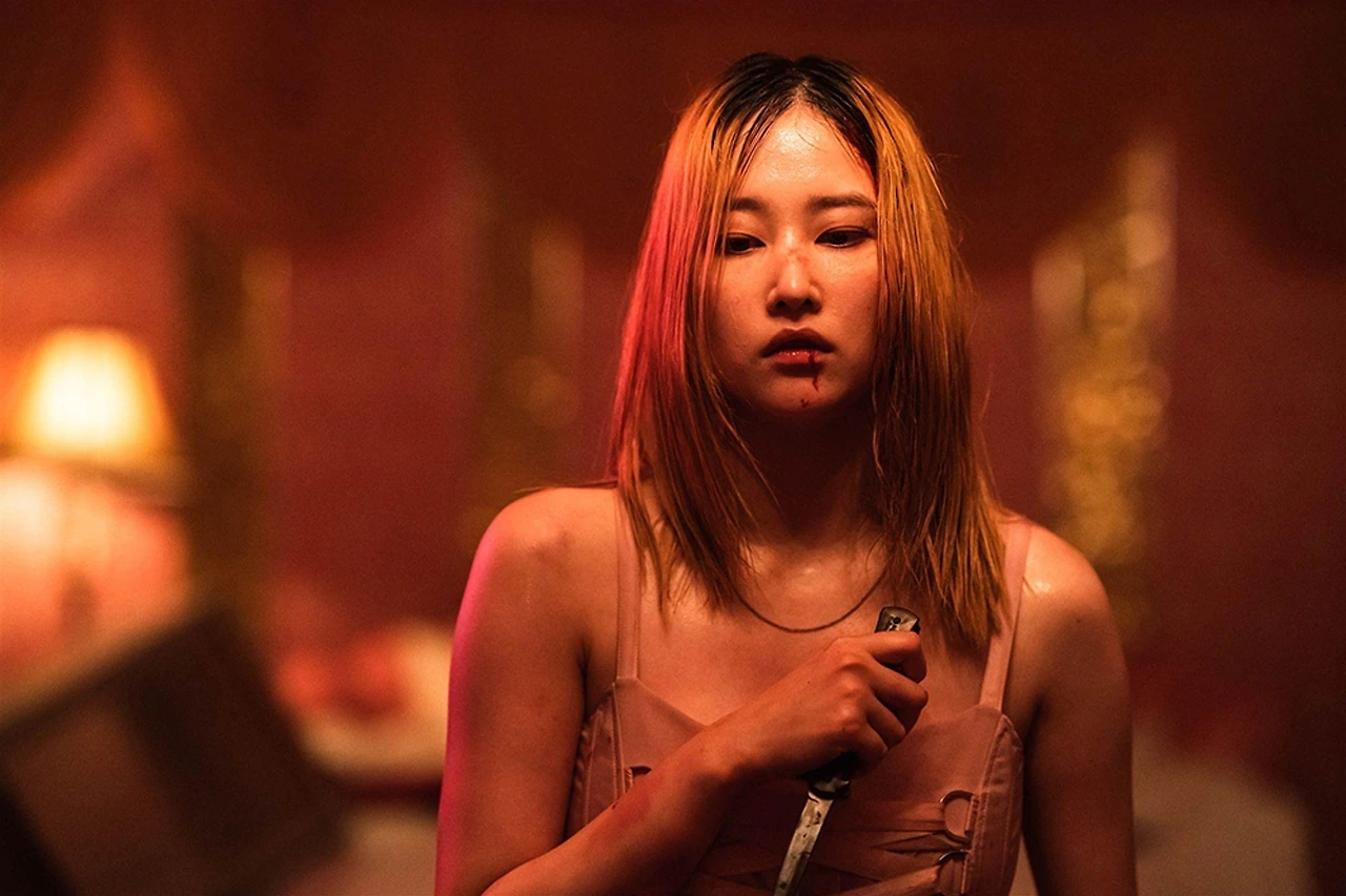 사운드가 이미지와 결합되면, 공포는 더 기이한 형태로 발전한다. 옆으로 긴 눈을 크게 치켜뜨고 상대를 바르게 응시하곤 하던 해미나 자영. 영숙은 안면 근육에 힘을 모두 빼고 눈을 게슴츠레하게 두거나, 입꼬리를 내리고 눈을 뜨악하게 뜨거나, 아예 얼굴 전체를 구겨버린다. 거기 생기는 없다. 독기만 있다. 꺽꺽거리며 삼키거나 거슬리도록 날카롭게 터지는 웃음, 입 주위나 머리카락에 묻혀가며 음식을 우겨넣는 버릇. 불쾌한 인상을 완성하는 디테일들은 치밀한 계산보단 예리한 감각에서 비롯된다. 서태지의 곡이 울려퍼지는 가운데 마룻바닥에 흥건한 피를 신나게 닦는 영숙을 보고, 헛웃음이 터졌다.
