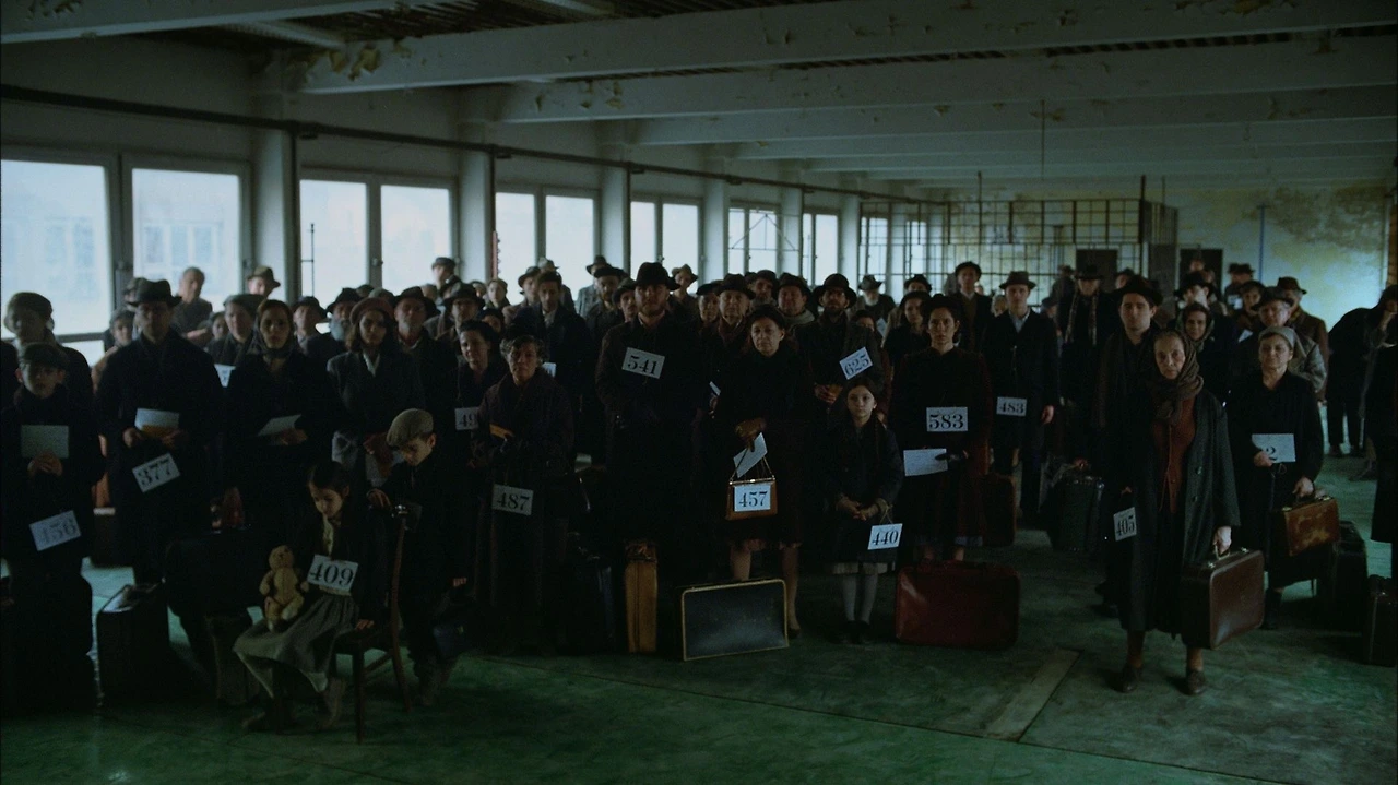 액자 안의 두 번째 오프닝은 미국에 닿은 라즐로의 모습에 에르제벳의 편지가 보이스오버되는 시퀀스다. 비좁은 공간에서 막 잠에 깨어 부랴부랴 인파를 헤치고 나가는 라즐로를 따라가는 롱테이크는 매초가 갑갑하고 초조하다. 편지가 화면을 빠져나가는 와중 라즐로는 그곳에서 빠져나가려 애쓴다. 부드럽게 흐르는 내레이션-편지와 더디게 나아가는 인물, 그 ‘방향’은 서로 어긋나는 듯 느껴지기도 하지만, 달리 보면 실제로는 아직 닿지 못한 에르제벳의 음성이 라즐로를 이끌며 함께 암흑을 벗어나는 듯한 연출이다. 라즐로는 마침내 야외로 나가 탁하고 환한 공허를 만난다. 무언가를 보고 환호하는 그는 화면 맨 하단에 몰려 있다. 이내 카메라는 그의 시야에 들어온 것을 찍는다. 자유의 여신상, 다만 거꾸로 뒤집혀 있거나 횡으로 돌아가 있다. 노골적인 만큼 효과적인 은유다.