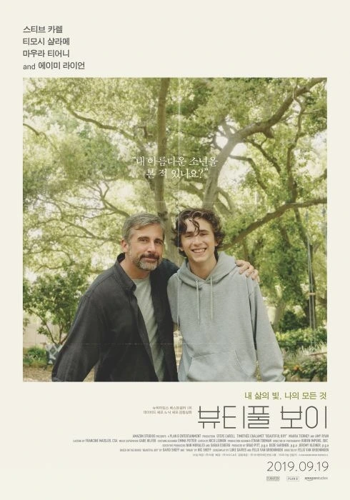 솔직히, 소재에 흥미를 느낀 것은 아니었다. 뻔한 교훈을 유도할 거라고 생각했었다. 작품은 내 취향이 아니겠지만, 티모시 살라메, 그리고 그와 스티브 카렐이 함께 연기하는 모습을 안 볼 수는 없었기에, 극장을 찾았던 것이다. 근데 너무너무 울어버렸다. <뷰티풀 보이>는, ‘감동실화’라는 틀에 박힌 문구로 광고하기에는 너무한 작품이었다. 이제까지 수십 번도 더 쓰인 유형의 플롯이지만, 그것을 다루는 방식은 같지 않다.