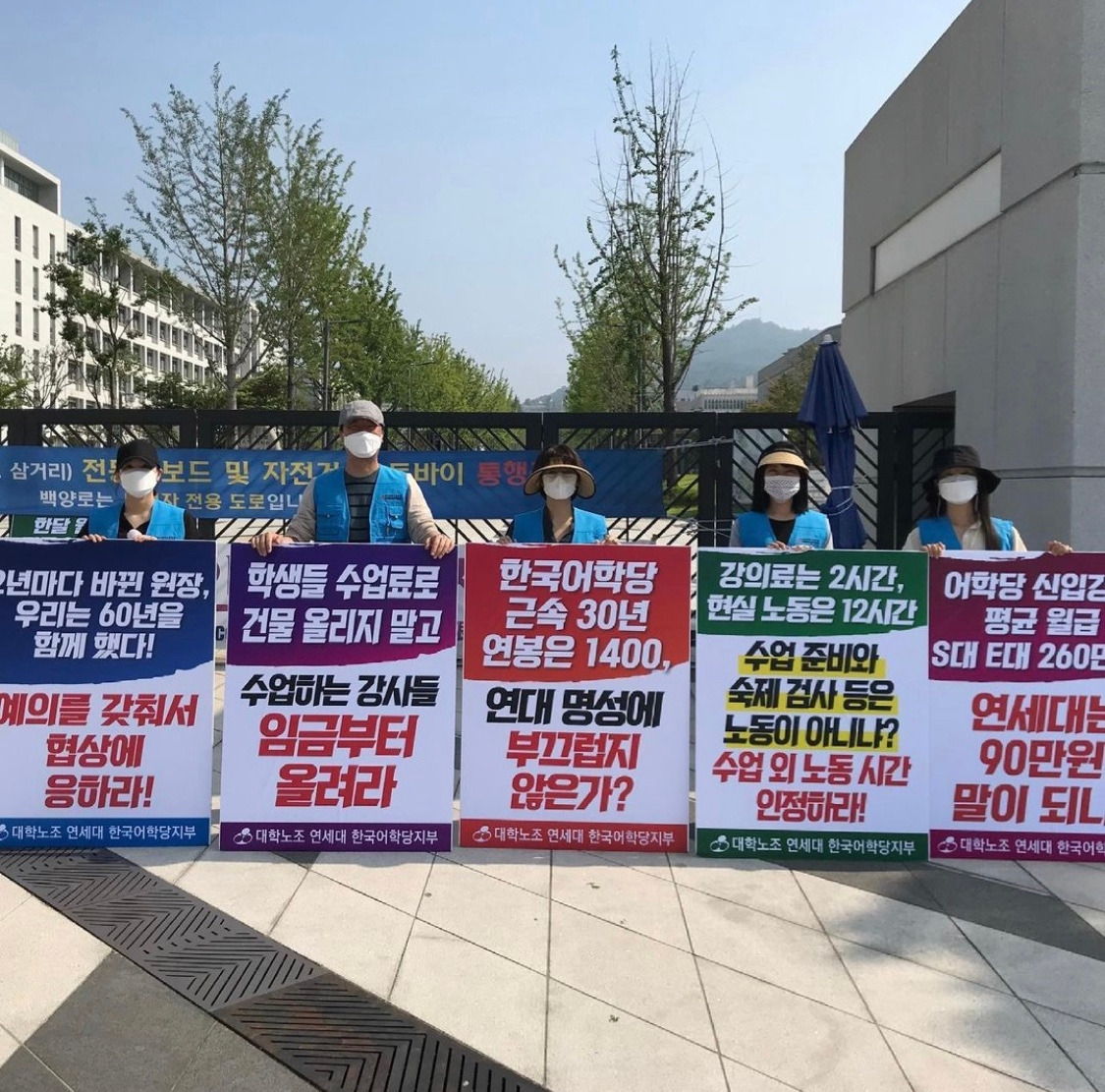 [1] 민주노총 대학노조 연세대학교 한국어학당 지부는 시급 5,000원 인상, 수업시수 20시간 보장을 요구하고 있다.