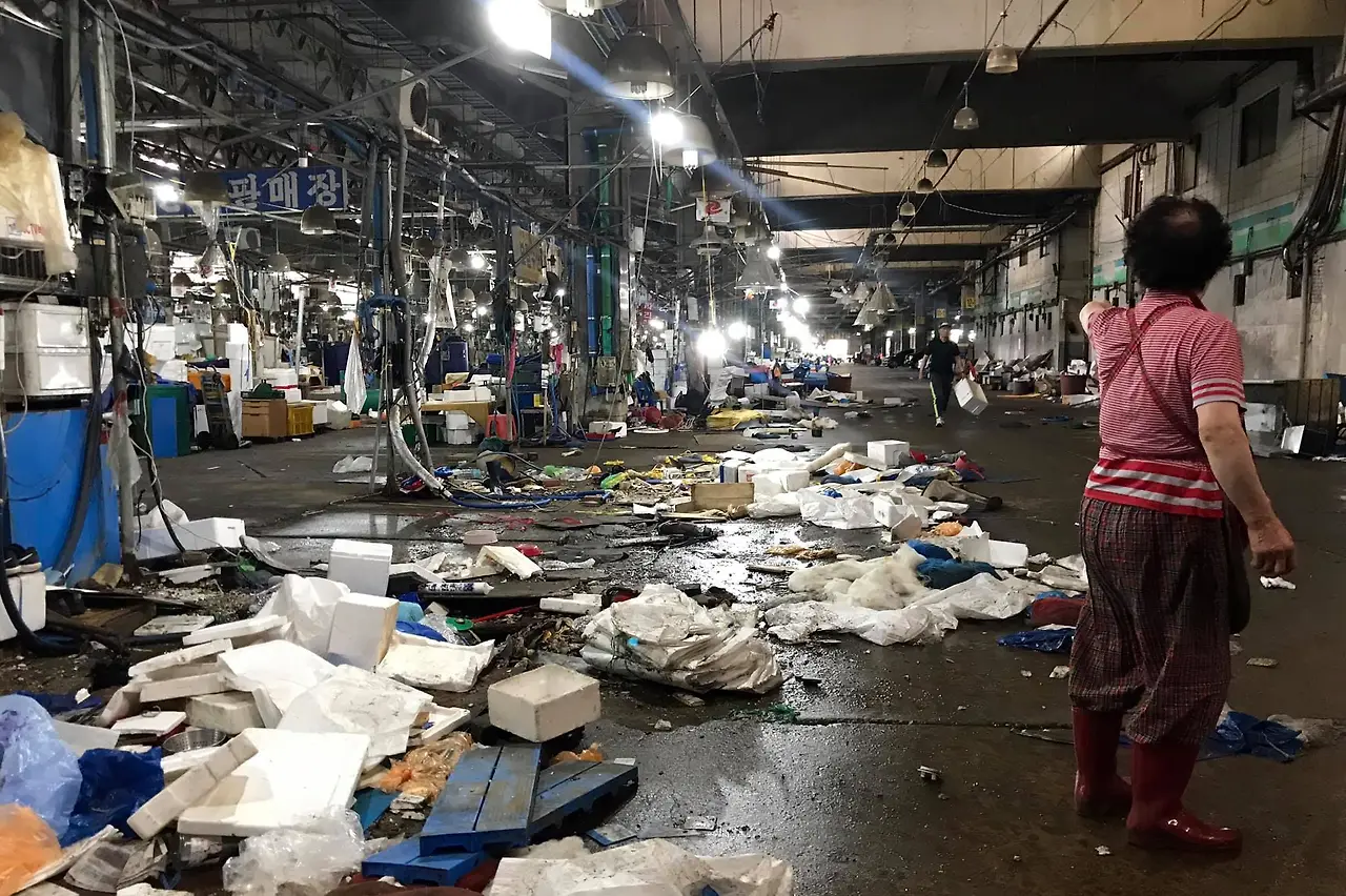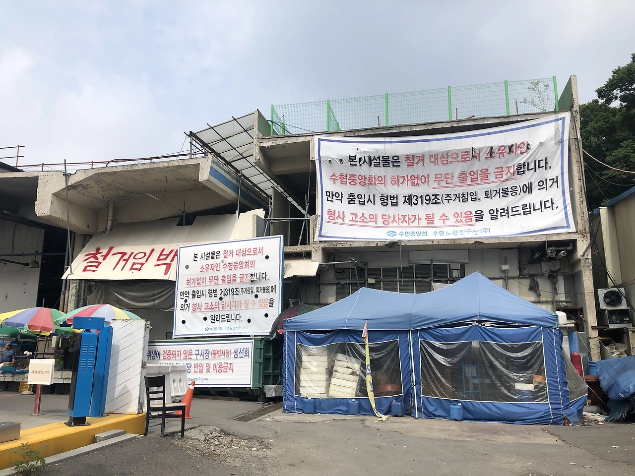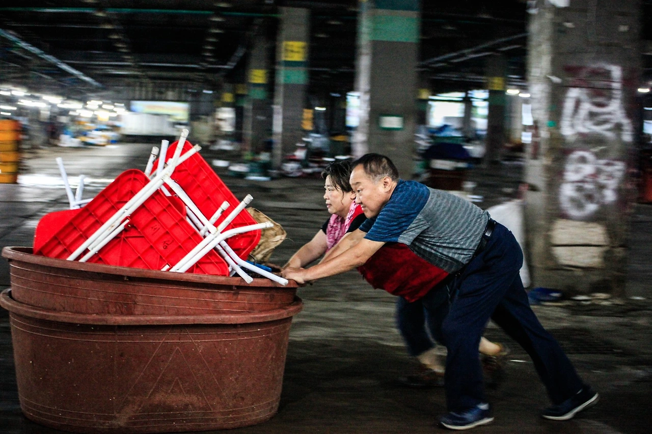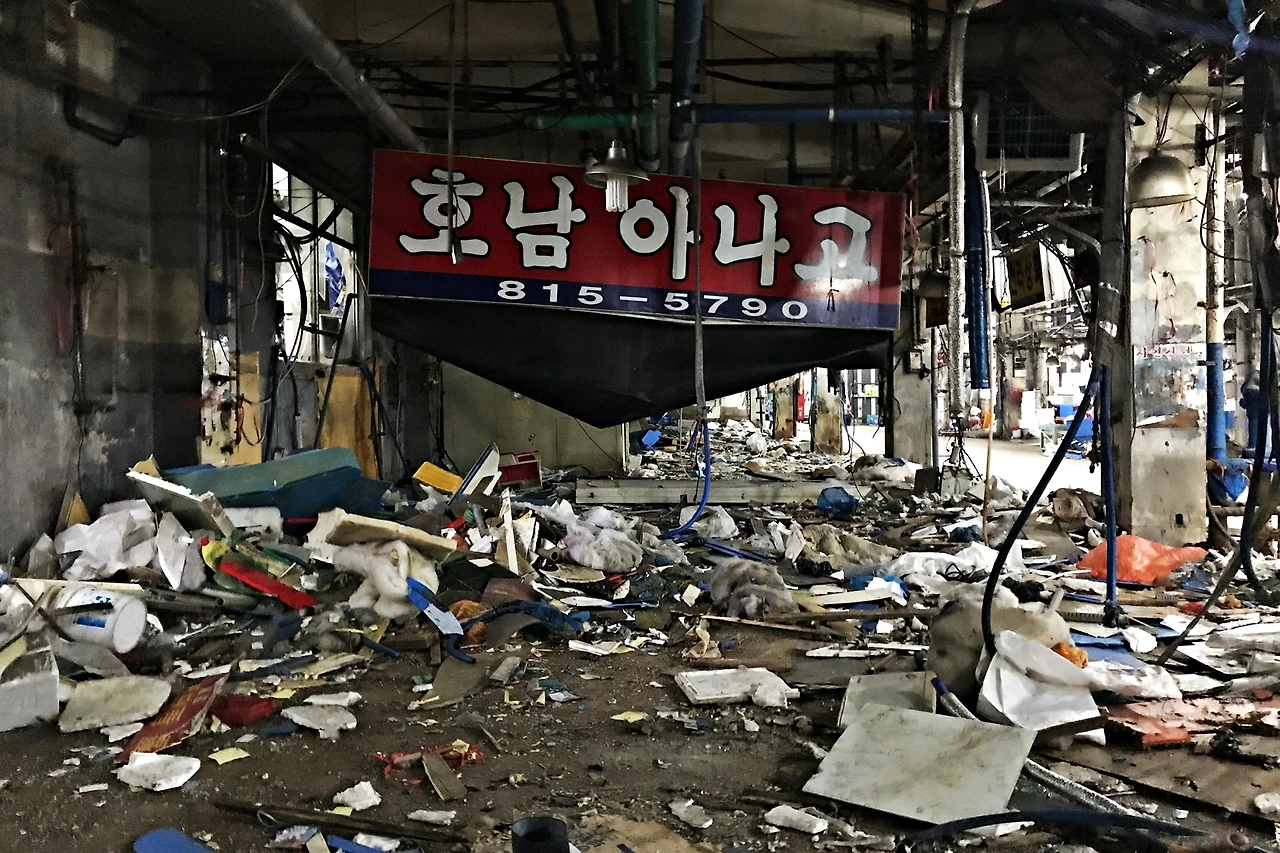 노량진역 7번 출구로 나오면 깨끗하고 세련된 시장 건물이 보인다. 그리고 그 바로 옆에 온갖 계고장이 덕지덕지 붙은 노량진수산시장 구시장(이하 구시장)이 있다. “출입 시 형사 고소의 당사자가 될 수 있다”는 위협은 구시장을 외부와 분리하기 용이하다. 수협은 구시장 밖에 콘크리트 벽을 세워 구시장을 완전히 바깥과 차단했다. 부서진 간판과 깨진 유리가 뒹구는 폐쇄된 구시장에 누구도 선뜻 들어서기 어렵다. 그런데 구시장에 아직 상인들이 남아있다.