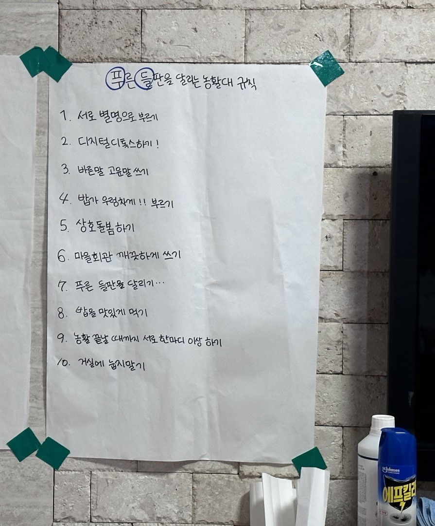 2022년 농활은 순탄치 않았다. 우리는 이것을 코로나19로 농활의 전통이 끊긴 탓이라고 분석했다. 농활에서는 늘 사건사고가 있다지만서도, 감히 그 이상의 상황이었다고 생각한 이유는 코로나19 때문이었다. 시골은 불이 많이 없어 밤에 아주 어두컴컴해지니 밤에는 마을회관을 벗어나면 안 된다는 것, 마을 어른들이 주는 음식은 되도록이면 사양해야 한다는 것, 공식적으로 술을 마시는 시간은 없으니 일찍 자고 다음 날 일정에 지장이 없도록 하는 것, 교양은 서로의 생각을 나누고 의제에 대해 다같이 토론할 수 있도록 진행해야 한다는 것, 식사는 반드시 직접 준비하고 직접 해결할 것. 농활의 모든 사소함과 그것에서 비롯하는 안전함을 코로나19가 망가뜨렸다.