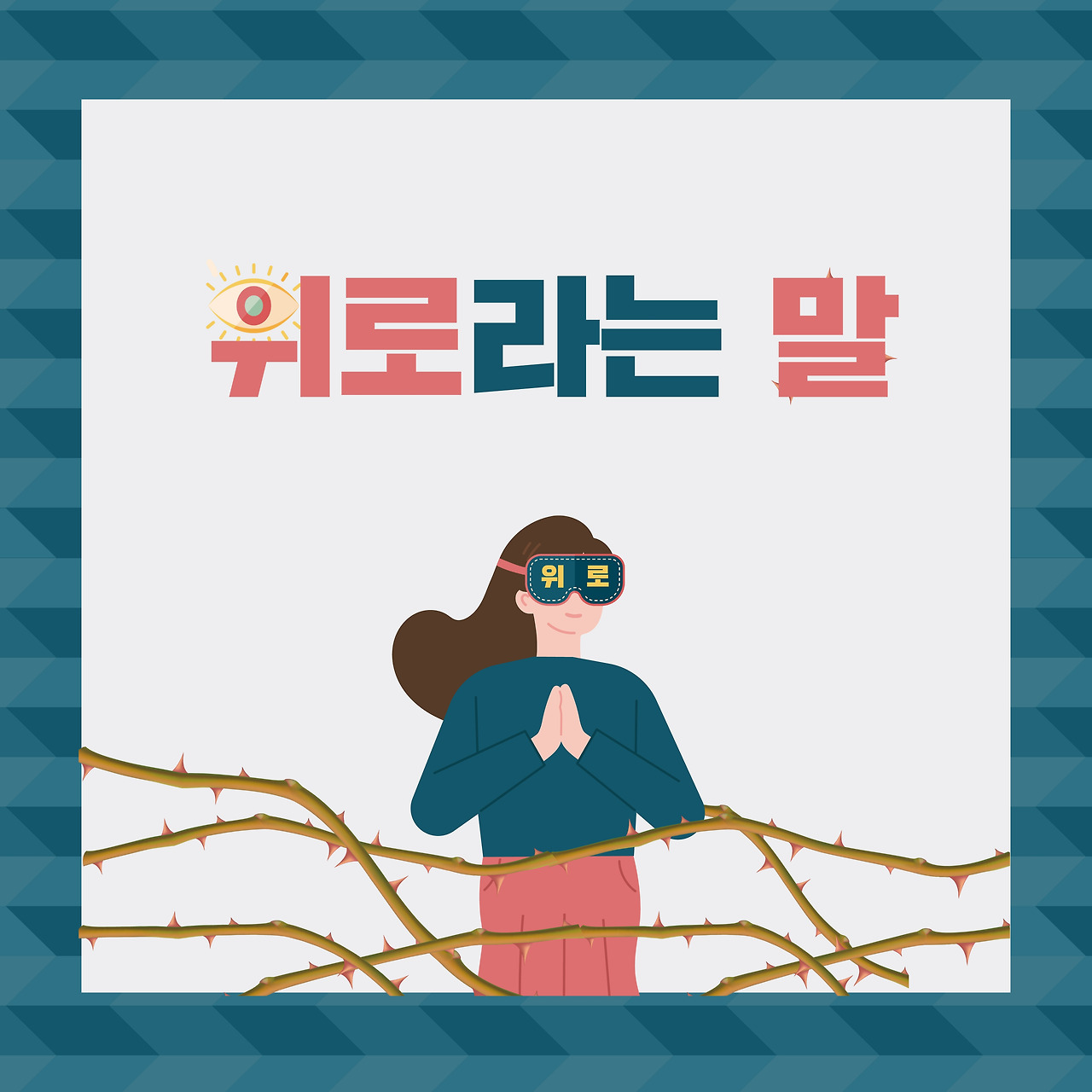 위로라는 단어를 검색했을 때 나오는 서적 인터파크 사이트 기준 3,462건, 서점 베스트 셀러 칸을 차지하고 있는 위로 컨셉의 감성 책들, ‘캐릭터 시리즈’, 넘치는 SNS 감성 글귀 등. 지금 우리는 위로에 중독된 것 아닐까?
