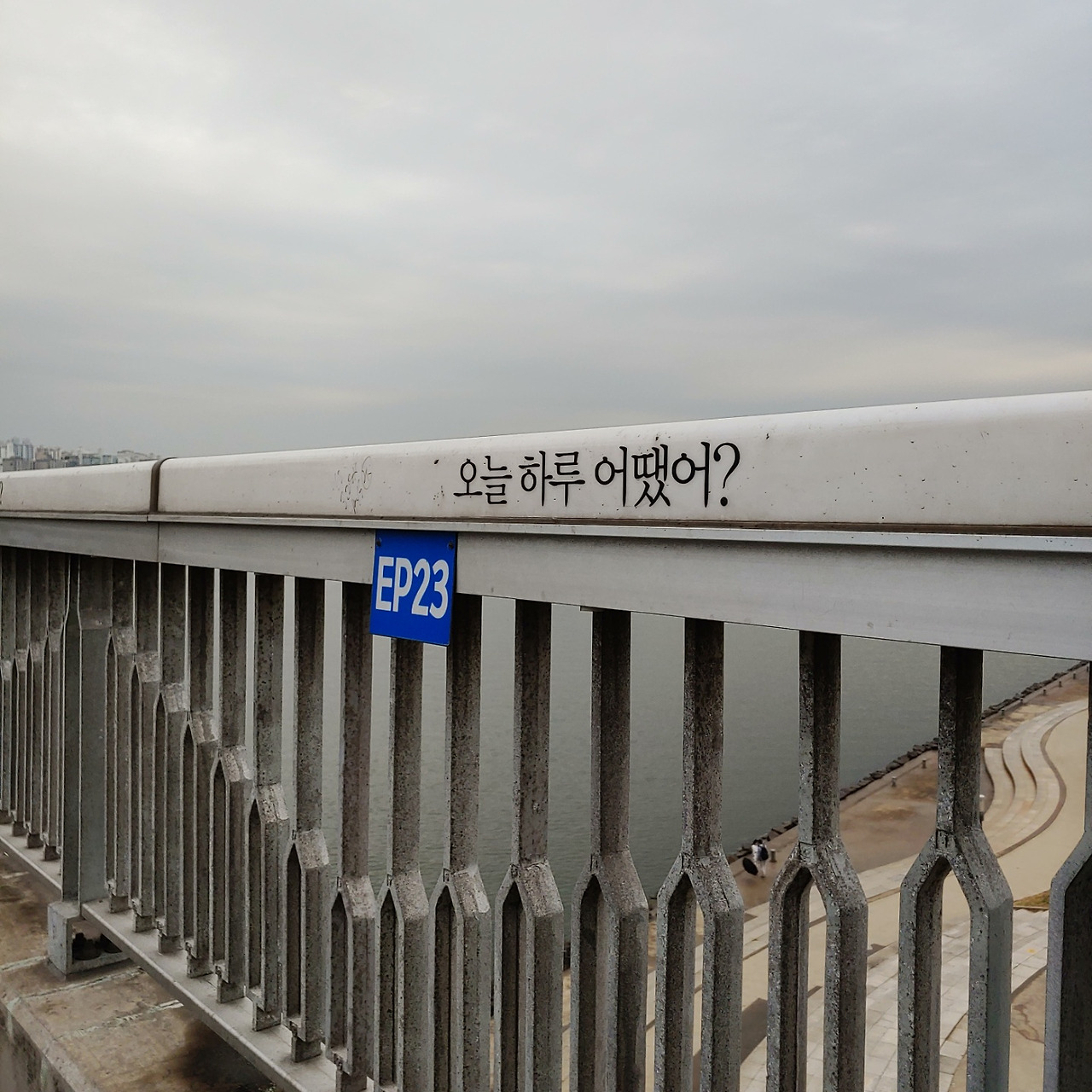 나는 최근에 마포대교 생명의 다리 위를 걸은 적이 있다. 그 다리를 걸으며 적혀 있는 글귀를 천천히 읽었다. 유명 인사들을 비롯해 다양한 사람들의 글이 적혀 있었다. 자신이 인생에서 겪은 일을 적은 진지한 느낌의 글도 있고 “수영 잘해요?”와 같이 장난스러운 느낌의 글도 있었다. 이 글을 쓴 사람들은 어떤 생각을 하고 적었을까? 과연 그들은 자살하려는 사람을 막고자 진심을 담아, 포기를 생각하고 이 다리를 찾아온 사람의 마음을 조금이라도 헤아리려 하며 글을 썼을까? 그 글들을 채택한 사람이나 쓴 사람이나 그저 겉이 번지르르한 글, 감성적인 글들만 고르고 쓴 것 같다는 생각이 들었다. 마음이 힘든 사람들이 그곳에 있는 글들을 읽었을 때 어떤 기분이 들지 생각하니 글에 진정성이 없어 보였다. 질소만 가득 들어 있는 과자 포장지 같았다.