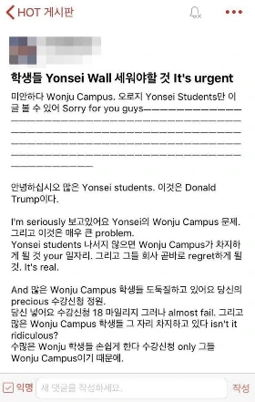 물론 대표자들의 탓만을 하기는 어렵다. 총여 폐지의 중심이었던 에브리타임에서는 연일 폐지 투표에 반대하는 중운위원들에 대한 인신공격이 이어졌기 때문이다. 물론 이는 갑작스러운 일은 아니다. 그동안 에브리타임에서는 익명성을 기반으로 여성, 장애인, 여대 학생 등에 대한 차별과 혐오가 계속되었다. 지속해서 문제되어 왔던 것은 이뿐 아니다. 국제대, 비상경계열, 원주 캠퍼스 학생, 수시 합격자, 편입생과 소속변경학생 등을 끊임없이 주변화하고 집단 간 서열을 매기는 모습을 볼 수 있다. 소위 ‘떡밥’이라는 이름이 붙은 이 주제들은 시시각각 돌아가며 매번 자유게시판을 달궜지만 학생사회의 의제로 공론화되지 못했다.