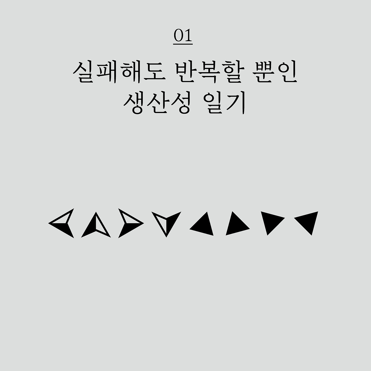 어쩌면 한 번쯤은 읽어봤을 자기 계발서에서, 부모님에게서, 혹은 힘들다고 투덜대자 조언을 건네오는 어떤 친구로부터 지겹도록 들었을 내용이다. 사실 이 리스트가 무엇과 가장 유사한가 생각하면 고3 때 가족보다도 더 오래 부대끼던 인강 속 1타 강사들이 밥 먹듯이 하는 말이었다. 조금 지루하고 뻔하긴 해도 유구한 역사가 자리하는 조언이다. 그럼에도 내가 직접 검색한 주제에 ‘생산성 향상’이라는 키워드에 기묘한 이질감을 느끼고 있던 까닭은 생산성이라는 단어가 주로 기업의 입장에서 활용되며 많은 경우에 노동자를 착취하는 방향으로 작용하기 때문이었다. 그러니 나와 같은 미래의 노동자 입장에서 ‘생산성 향상’ 글을 읽고 그 방법을 따라 해 보는 게 마치 악랄한 자본주의의 아가리에 자발적으로 들어가는 행위일지도 모른다는 꺼림칙한 생각으로 이어졌던 것도 당연한 수순이었다. 하지만 이 순간의 나는 어쩐지 간절해서, 설령 꺼려지더라도 나를 개선해 내는 일이 뭐가 나쁘냐고 투정했다. 생산적이어야 한다는 강박이 과연 어떤 기저에서 비롯된 것인가 하는 지극히 합리적인 의심과, 그렇지만 이대로 널브러진 채 살고 싶지는 않다는 자기발전의 욕망 사이에서 생산성을 확보하기 위한 나의 긴 여정이 시작되었다.