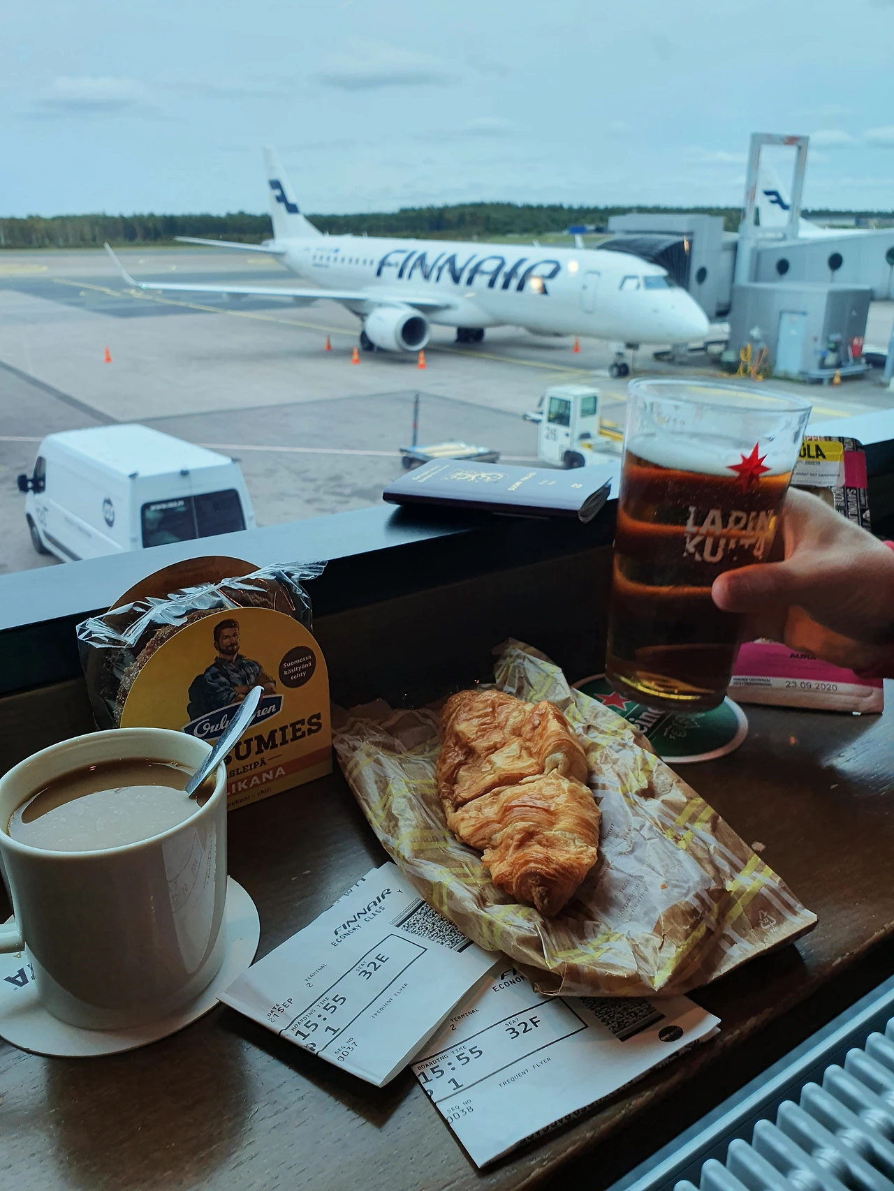 헬싱키와 스톡홀름 공항의 특이한 점은, 술을 파는 바(bar)가 면세점보다 더 인기라는 거다. 헬싱키 공항에서 체크인을 마치고 짐 검색대를 통과해야 갈 수 있는 바(bar)는 비행기 여러 대의 출발이 겹치는 러시아워에 맞춰 붐빈다. 공항에서마시는 차가운 주 한 잔으로 여행의시작을 실감하는듯하다. 테이블에 커다란 맥주잔을 올려놓고 앉아 있는 핀란드인 특유의 무표정한 얼굴에는 자세히 보면 미세하게 행복함이 번져있다. 바 근처에서 파는 핫도그는 그 안의소시지 하나에 머스터드소스가 한 줄 뿌려진 게 다지만, 그 역시 인기다.