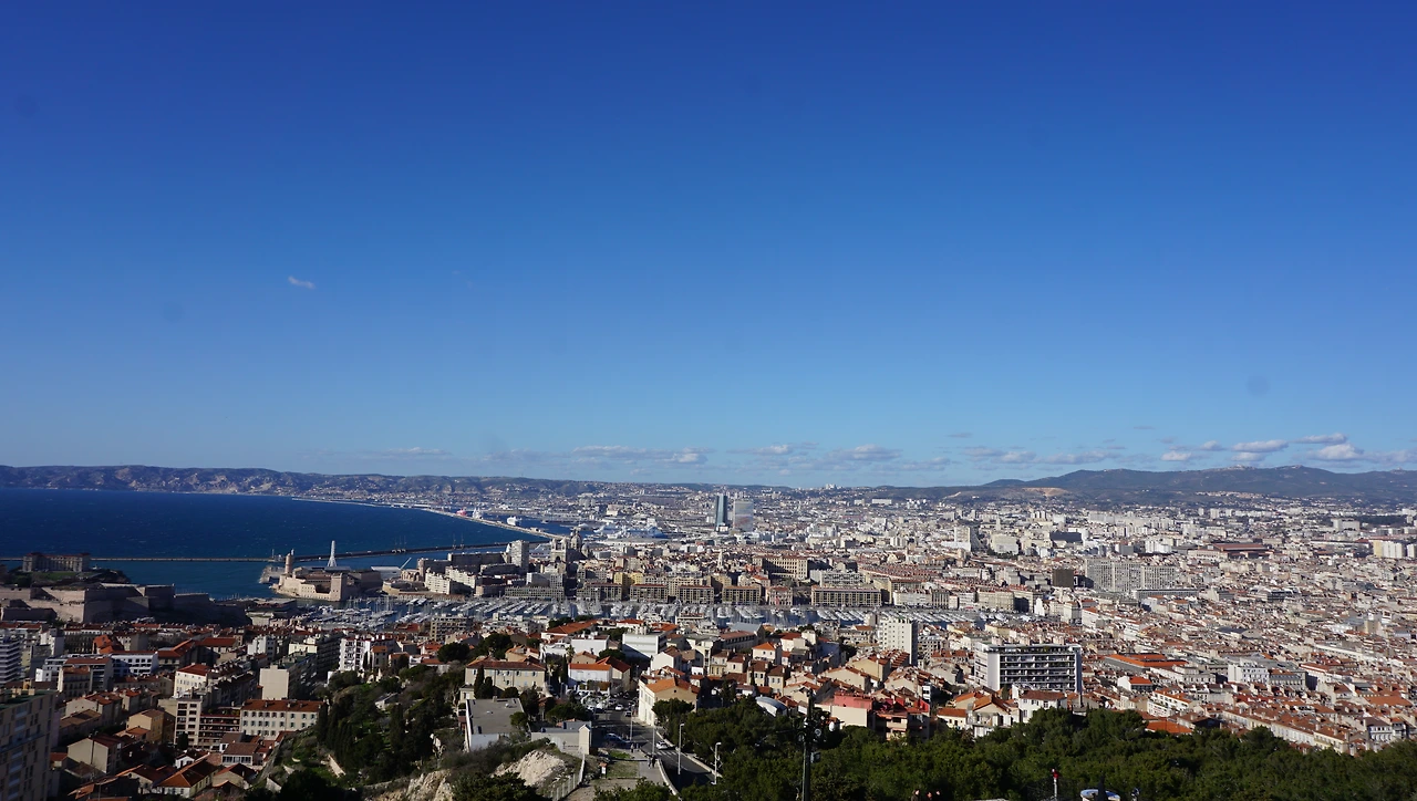 전혀 예상치도 못했던 풍경. 오르면 오를수록 뒤로 보이는 전망에 노트르담 성당은 어느덧 뒷 전이고 한 눈에 보이는 마르세유의 풍경에 매료되고 만다.