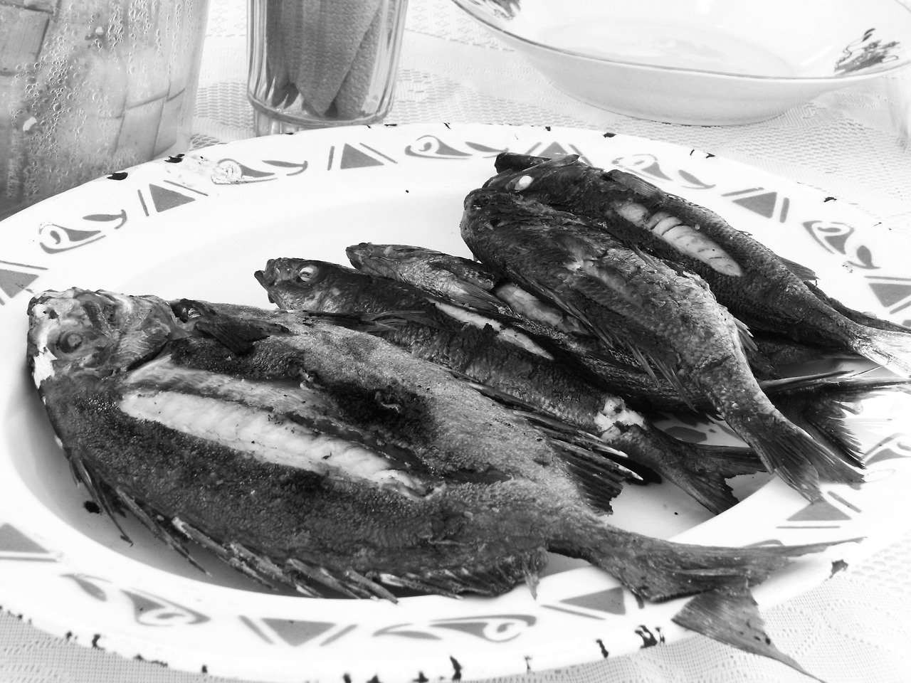굶주렸던 우리는 아구스를 따라 그의 형수가 일한다는 천막으로 곧장 갔다. 붉은 비늘이 바삭하게 튀겨진 생선을 보자 제프 할아버지는 허겁지겁 먹더니 금세 몇 마리를 해치웠고, 생선을 못 먹는 나는 아무렇지 않은 척 맨밥을 꼭꼭 씹어 먹었다. 아따우로 섬의 주식은 생선이었다.