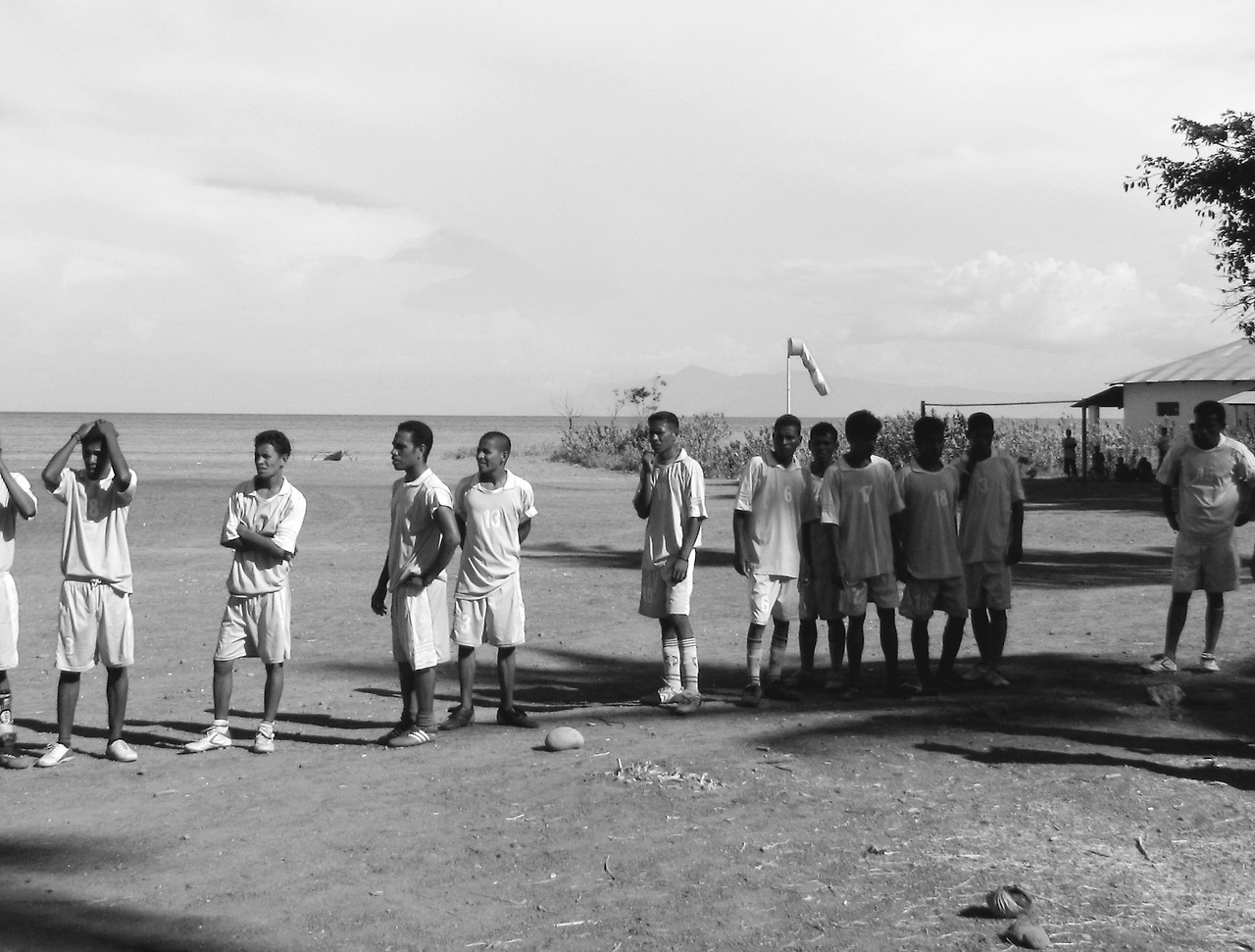 경기가 열리는 곳은 빌라 마을이었다. 제프 할아버지와 나는 아구스를 친구로 둔 덕에 축구팀원들과 함께 UN글씨가 새겨진 지프차를 타고 갔고, 경기가 시작된 후 에야 30여 명 정도의 마을 사람을 실은 작은 트럭이 도착했다. 하늘색 유니폼의 벨로이 팀과 빨간색 유니폼의 빌라 팀, 푸른 잔디밭 대신 펼쳐진 모래밭 뒤로는 햇빛이 반사되어 스트라이프 무늬가 생긴 바다가 펼쳐졌다.