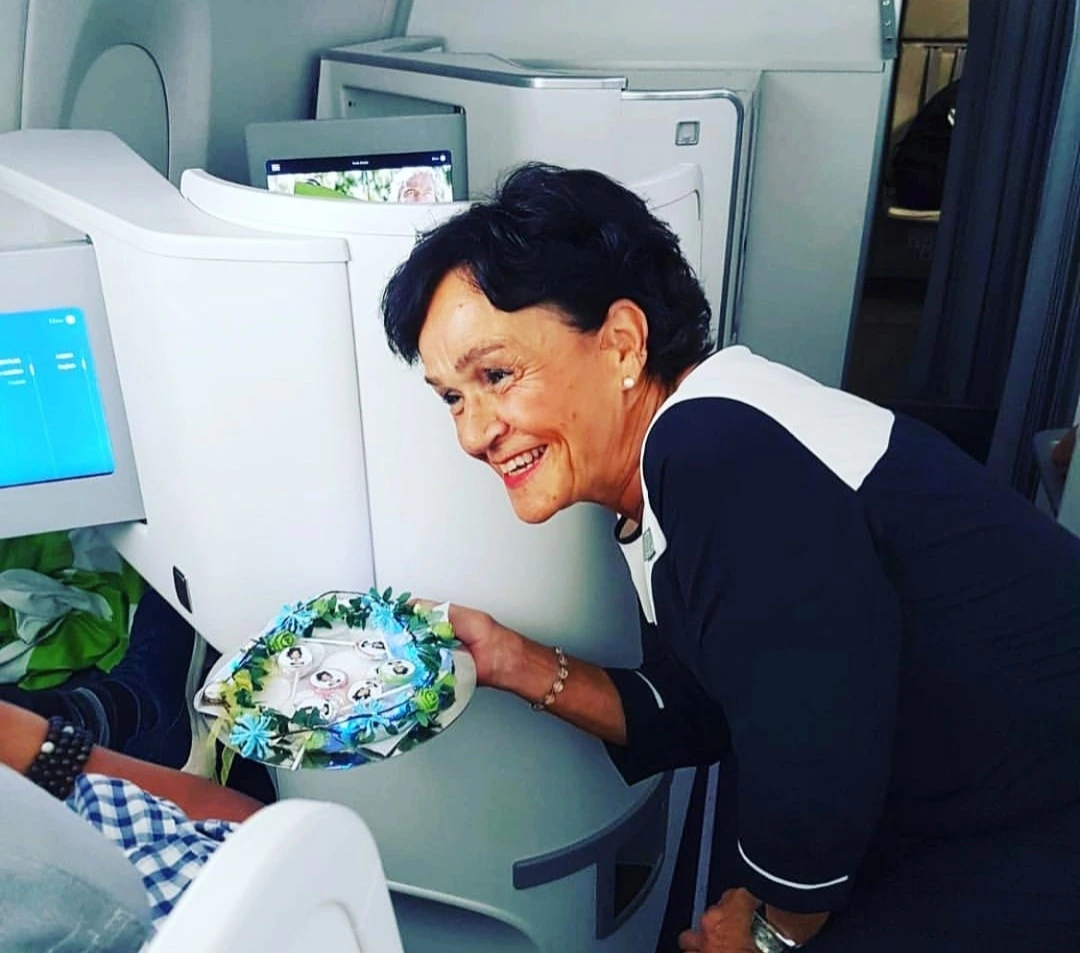백 살이 다 되어가는 이 회사의 동료들 중에는 할머니(할머니의 기준을 몇 세에 둬야 할지 애매하지만, 상상 속의 '호호 할머니'와 이미지가 비슷하면 할머니라고 가정하자) 승무원들이 꽤나 많다. 그녀들은 일상에서 버스를 타면 마주칠만한 머리숱이 별로 없고 자세가 구부정한 모습을 하고 있기도 하지만, 영화 '악마는 프라다를 입는다'에서 미란다 프리슬리가 배역을 맡은 편집장처럼 강한 카리스마를 뿜어내기도 한다.