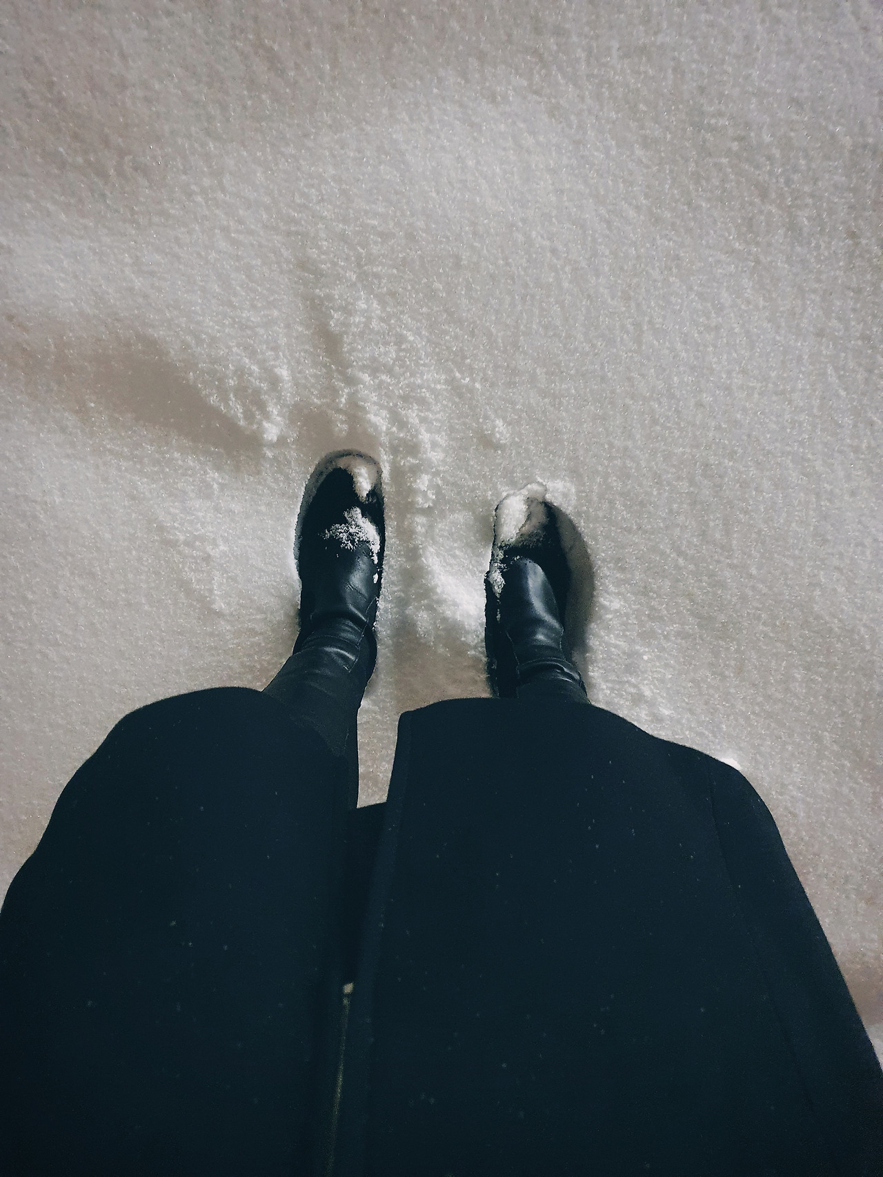 최근에 하이힐 대신 캐주얼 신발이 허용되어 나는 요즘 유니폼으로 검정 스니커를 신는다.