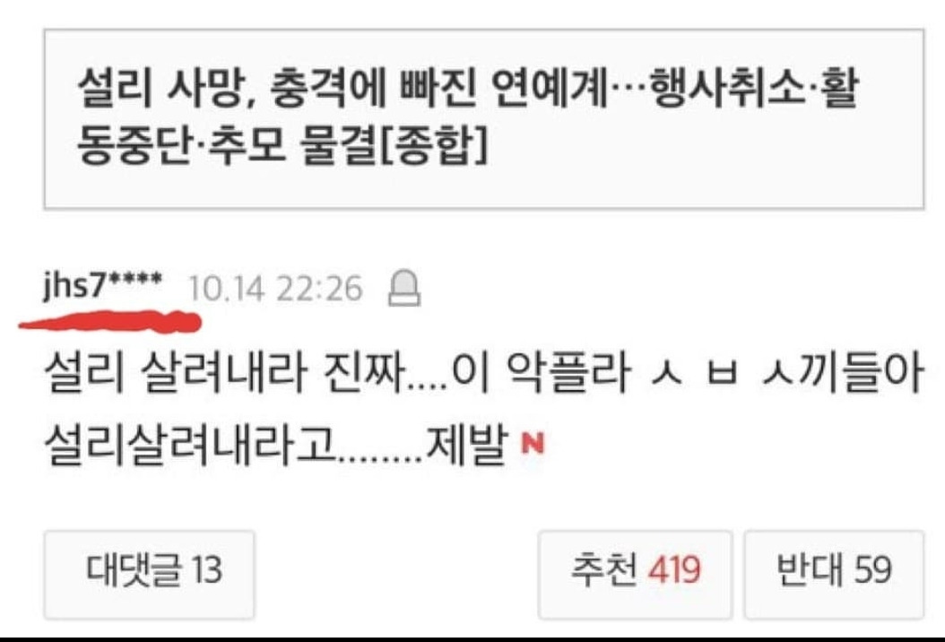설리의 죽음 후 참 특이한 추모 행태를 보았다