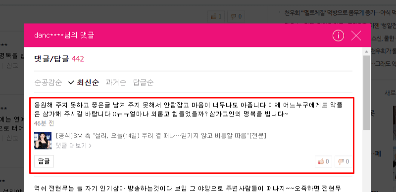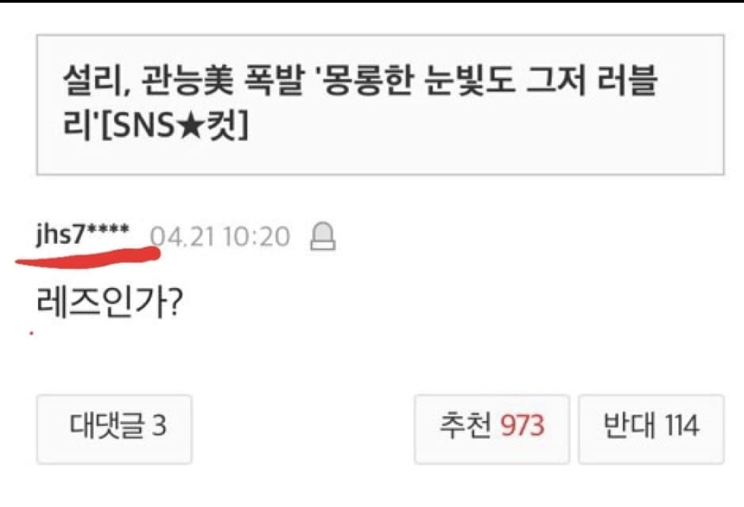 어디에도 설리에게 그동안 심하게 굴어 미안했다는 사과는 찾아보기 어려운 것 같다.