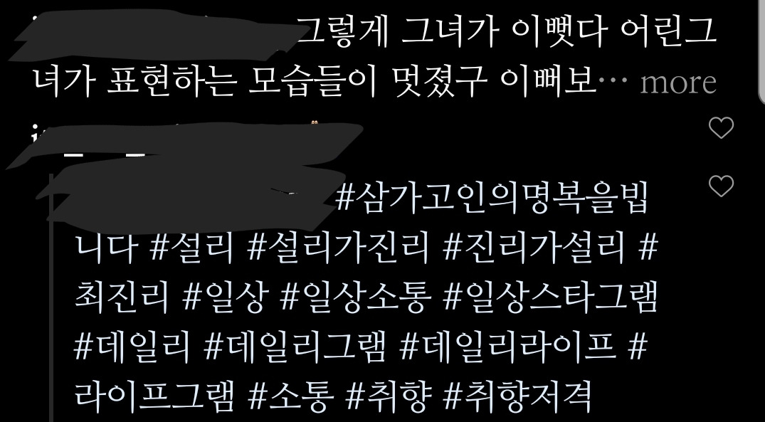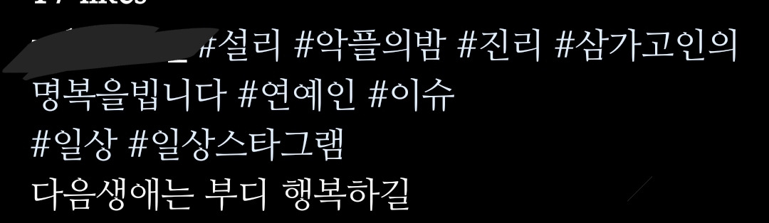 분명히 설리의 명복은 빈다고 하는데 해쉬태그가 참 많다.