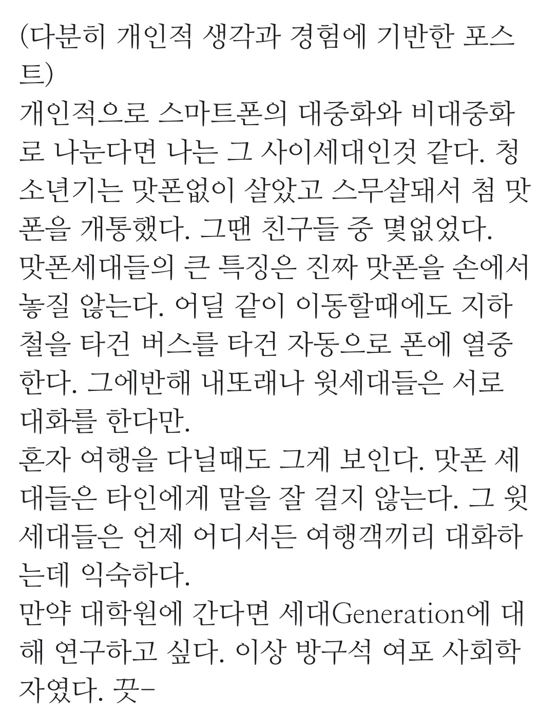 실제로 유럽여행중에 남겼던, 여행객간 세대차에 기인한 커뮤니케이션 온도차에 대한 개인적 감상 글