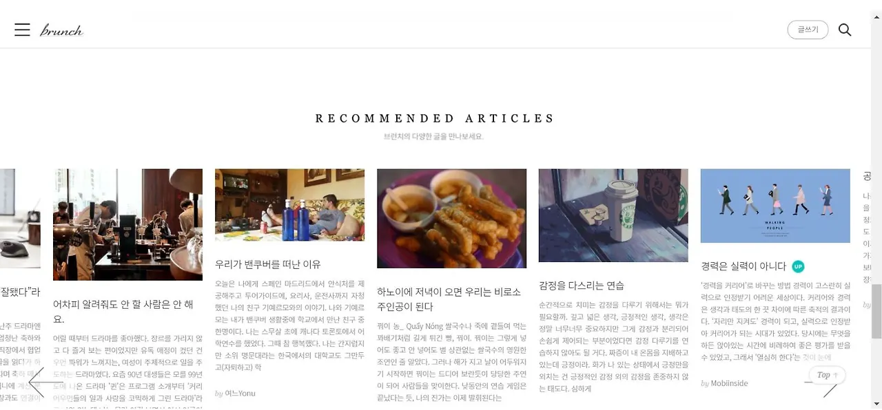 그 후에도 몇 번 브런치 인기글에 가긴 했는데(혹은 간 것 같긴 한데) 굳이 캡처해두거나 찾아보지는 않았다. 계속 찾아보다가는 인기글용 글을 쓰려고 집착하게 될 것 같아서.