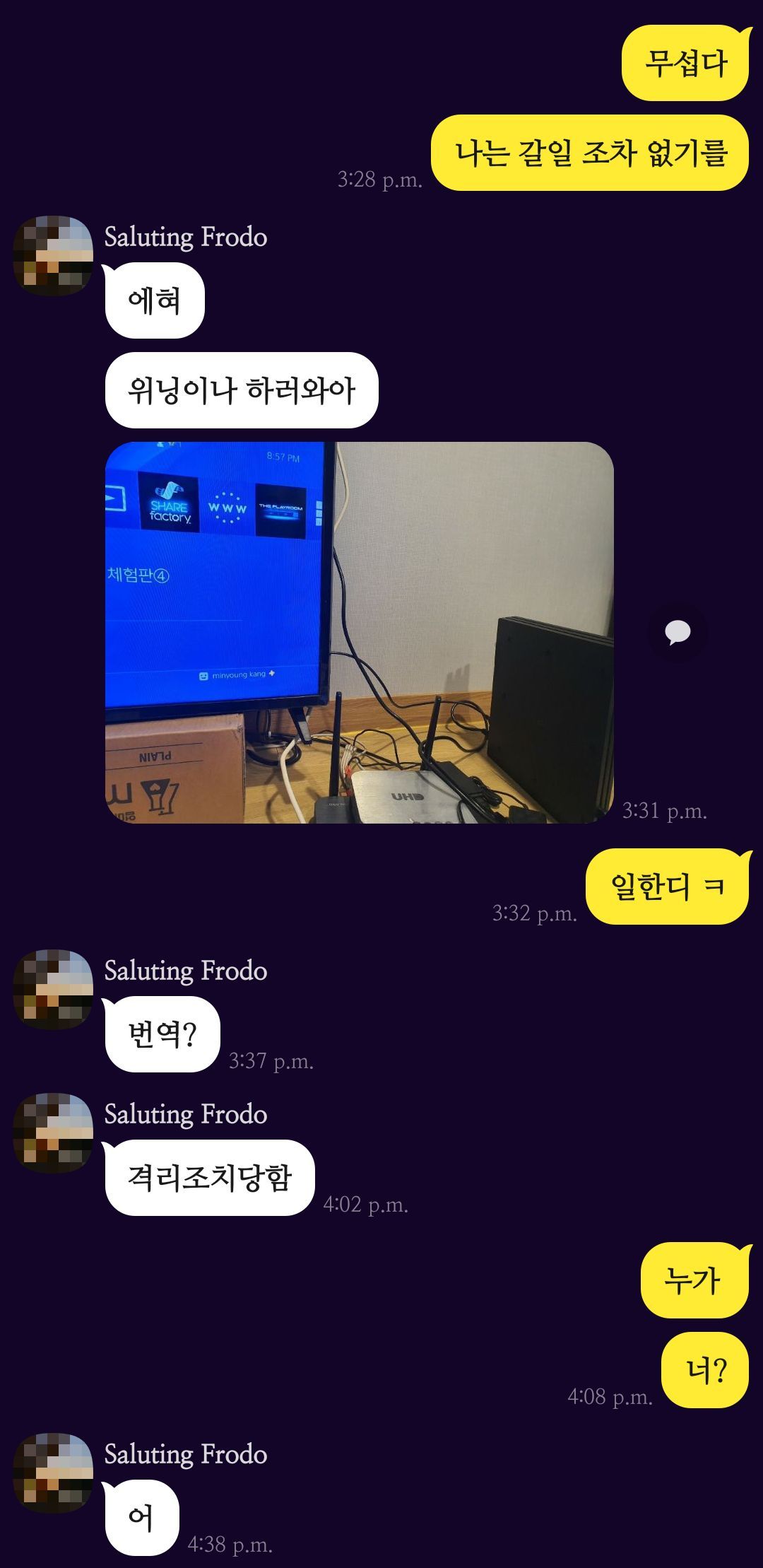 2월 23일, 내가 강의 카톡을 안읽씹하고 있다가 4시 2분 재차 메시지를 보낸 그의 비명과 같은 카톡을 읽기 전까진.