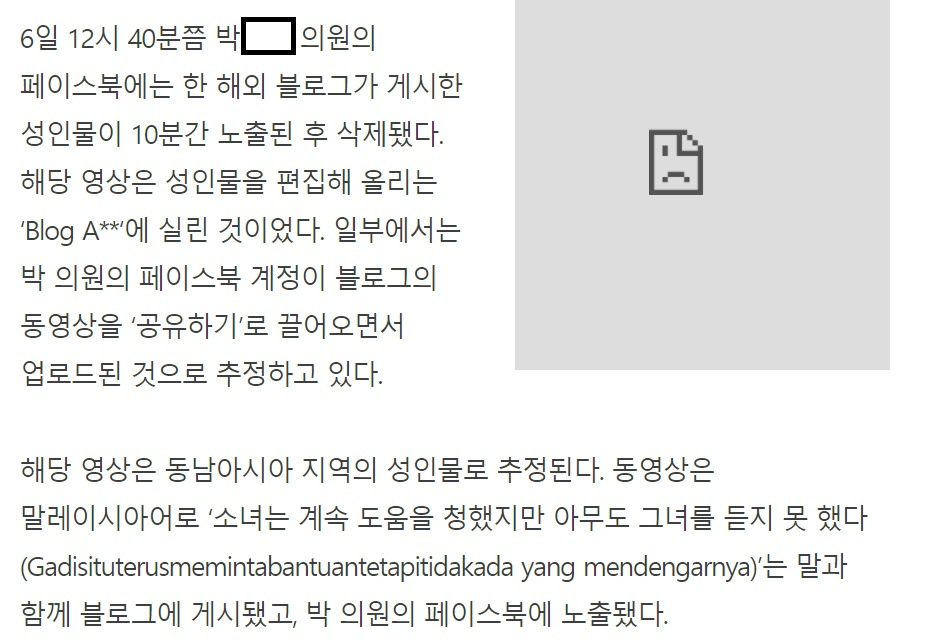 이틀 전인 6일, 한 정치인의 페이스북에도 '야동'이 올라왔다. 제목은 '소녀는 계속 도움을 청했지만 아무도 그녀를 듣지 못했다' 끔찍한 제목이다. 동남아시아는 미성년자 성매수부터 불법 성착취 동영상 촬영이 팽배한 곳이다. 해당 의원은 해킹이나 실수라고 해명했고 이제 조용히 묻힐 일만 남았다.