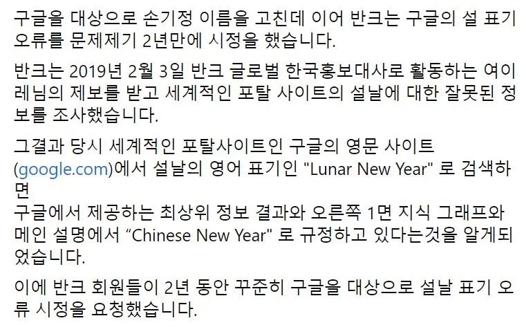 반크가 해냈다! 이제 더이상 구글에 Lunar New Year를 검색해도 Chinese New Year라는 단어는 뜨지 않는다.