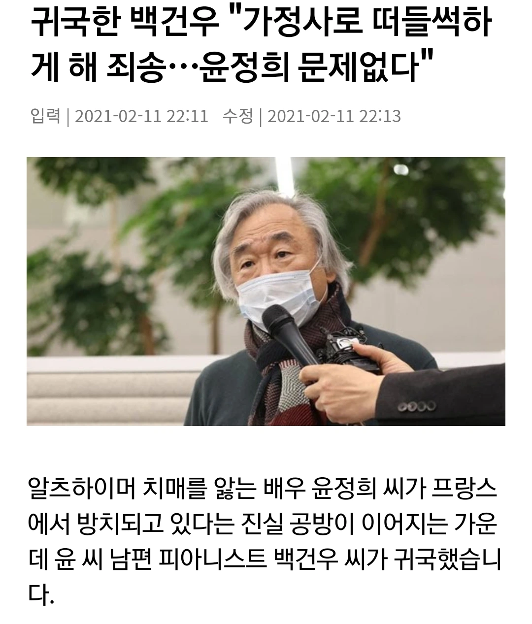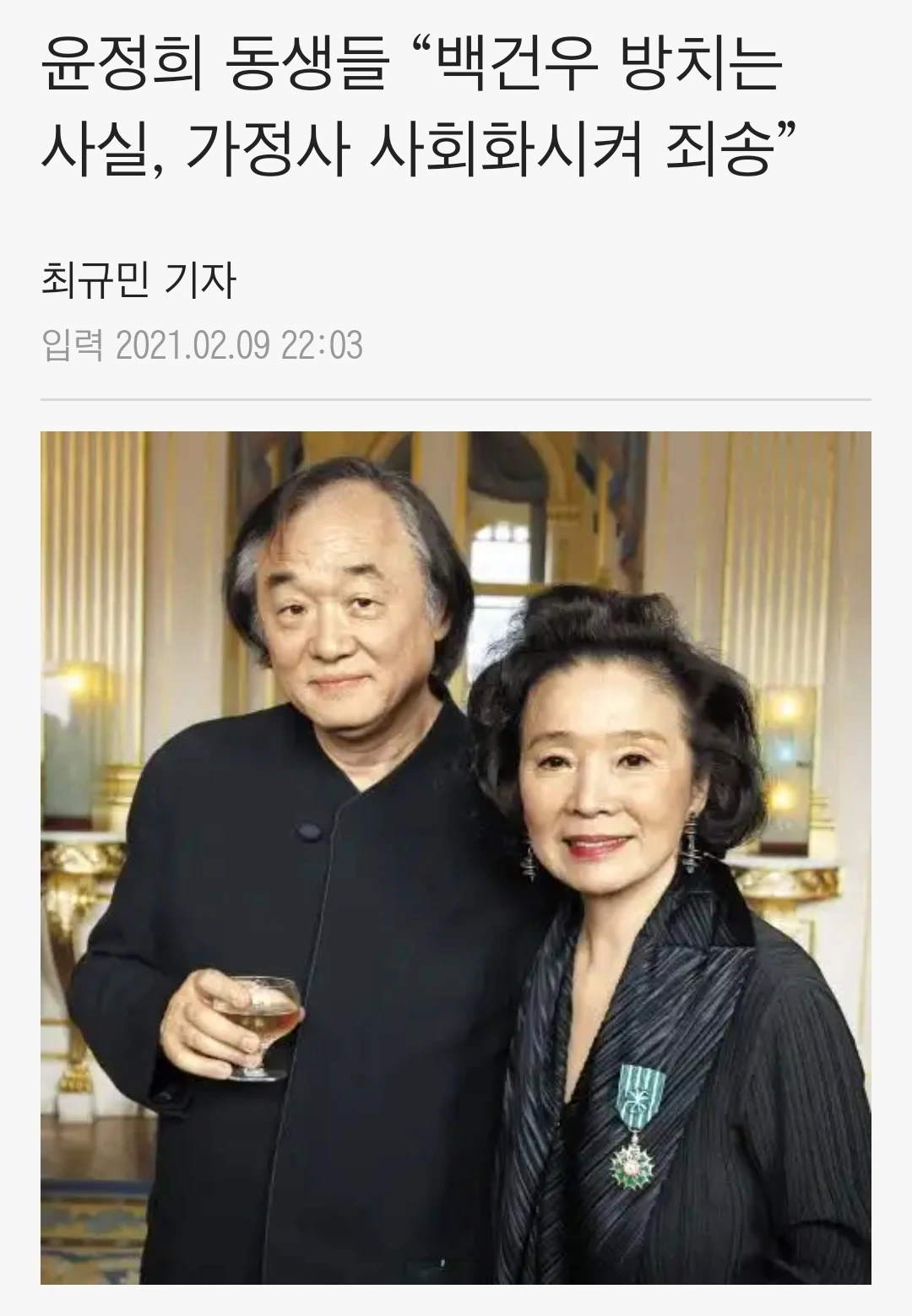 남편 백건우의 윤정희 방치설은 부디 사실이 아니길 바랄뿐이다.