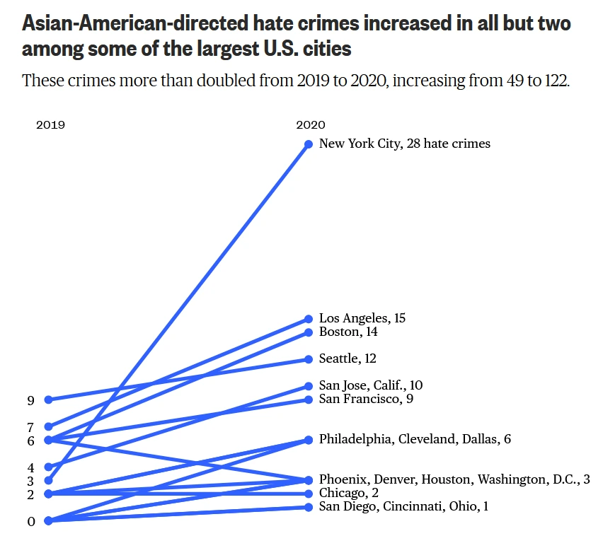 2019년에서 2020년까지 미국 아시안 증오 범죄 150% 증가했다는 기사가 떴다.