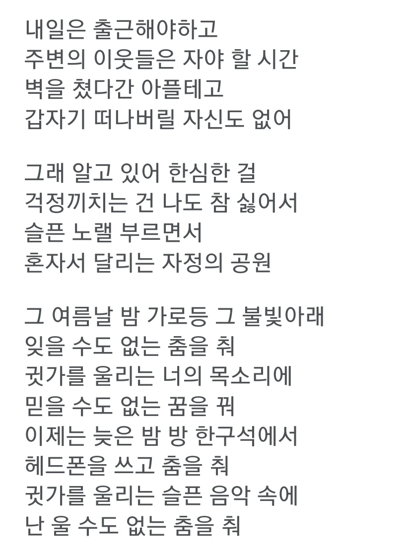 영화 밖 현실에선 다 불가능한 이야기. 하이퍼리얼리즘을 담은 노래나 듣다 자야지...