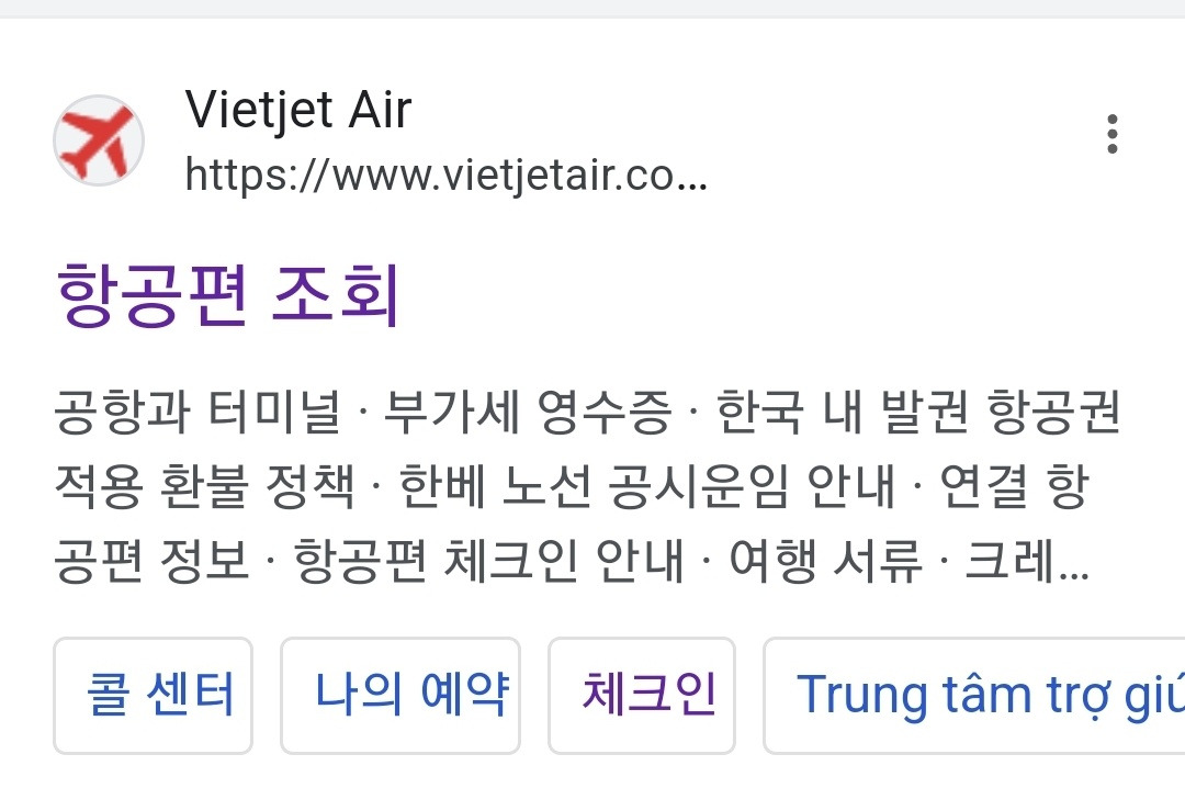 해결책은 구글에 vietjetair korean을 검색하는 것이었다. 구글에 검색하자 바로 한글로 항공편 조회와 체크인이 검색됐다. 체크인을 클릭하고 들어가자 짜잔!