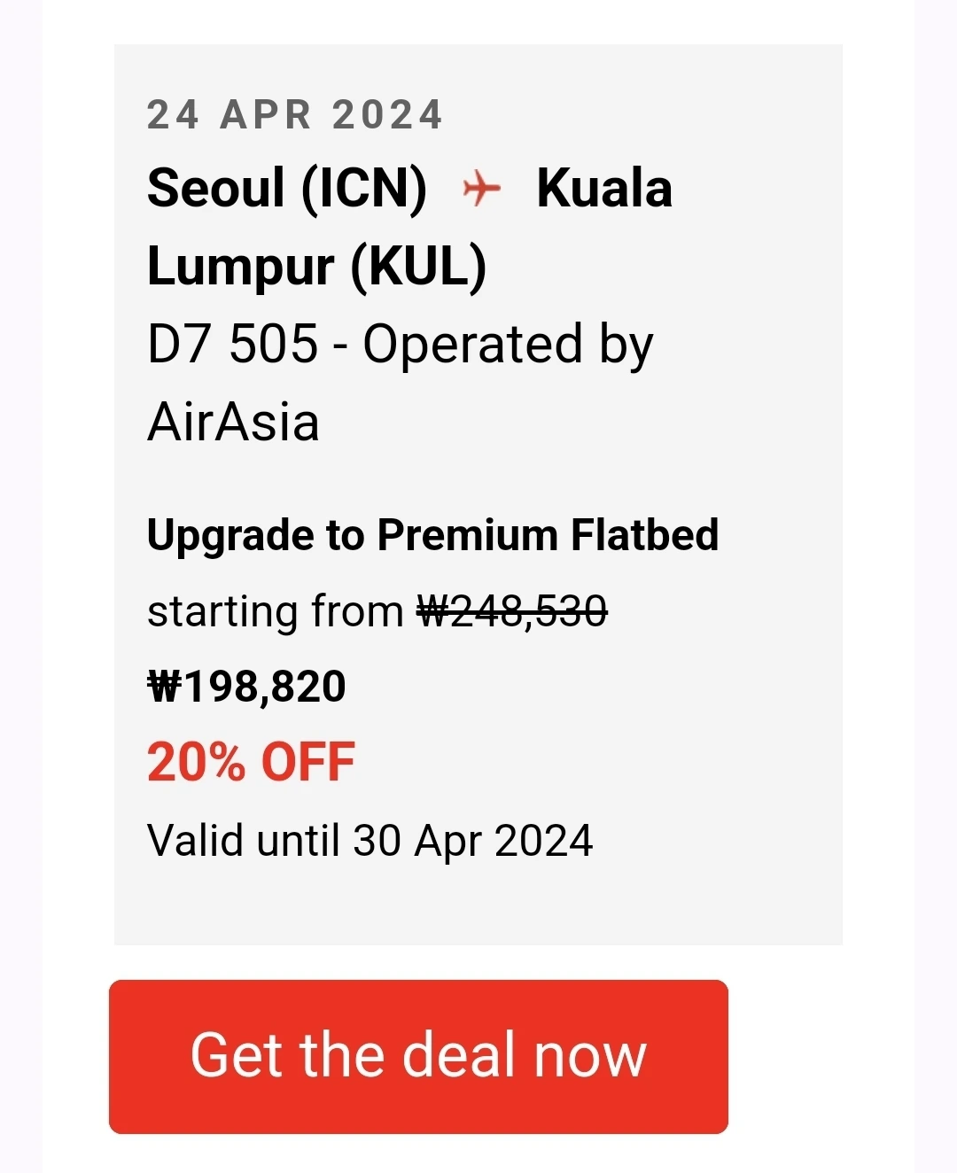 온라인체크인을 마치자 에어아시아는 내게 더 편한 프리미엄 플랫베드 좌석을 선택하라며 메일도 보냈다. 색다른 경험이 될 테니 선택해볼까 하다가 20만 원 가까운 돈이 더 들기에 내 자리를 고수하기로 했다.