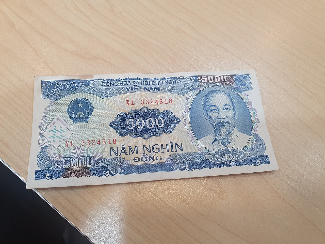 여행을 마치고 남은 달러와 베트남 동화를 바꾸기 위해 은행에 갔다. 달러와 자국화를 쓰는 몇몇 동남아국가에서는 자기들끼리 사용하길 꺼려하는 낡은 달러를 거스름돈에 끼워 주는 경우가 있는데 내가 그걸 당했었다. 거스름돈 4달러를 받고 나왔는데 1장이 딱 그런 달러였다. 후에 비행기에서조차 그 1달러는 사용하지를 못했다. 하지만 대한민국에선 낡은 달러도 문제없이 환전해 준다.