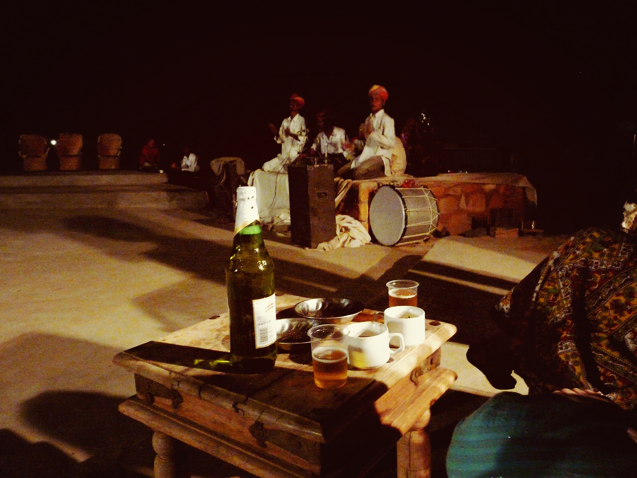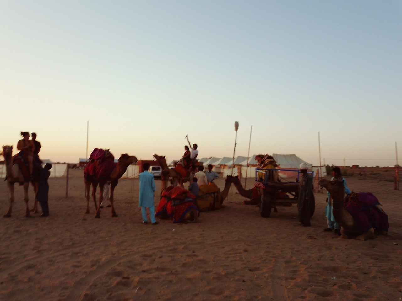 차를 타고 20분쯤 되었을까, 도착한 이름 모를 사막에 도착했다. 인도 사람들이 거의 대부분이다. 가끔 서양인이 보였지만 동양인은 우리 네 명 밖에 없었다. 도착할 그 쯤에 해가 서서히 지고 있었다.