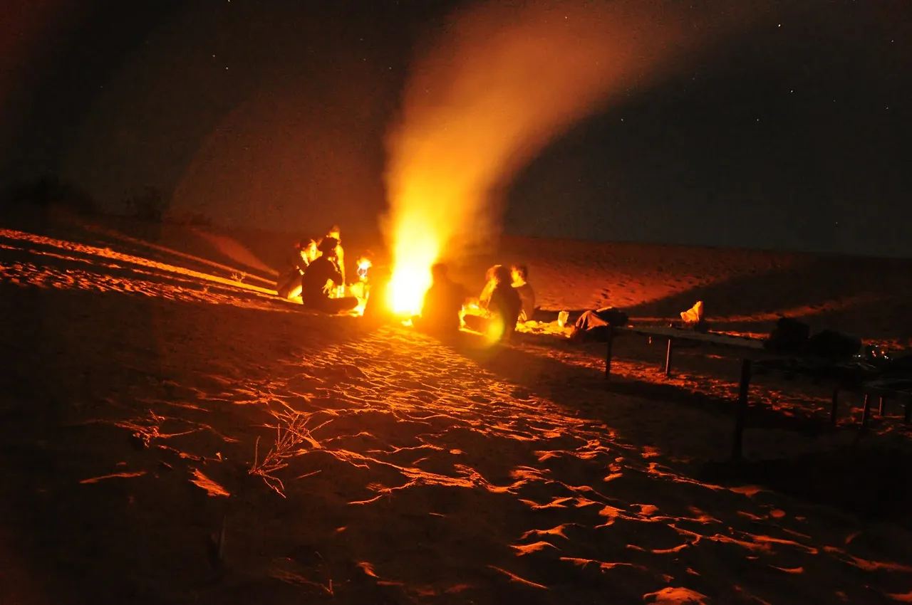 해가 지고 나니 추위가 찾아왔다. 불을 지피기 시작했다. 거기서 옹기종기 모여 앉아 맥주를 마시기 시작했다. 반나절밖에 지나지 않았지만 제법 함께한 이들과 친해졌다. 그들이 어디서 왔는지 왜 인도에 왔는지부터 시작해서 진지한 이야기까지도 술기운에 나왔다. 일본어를 할 줄 알다 보니 일본인들과도 친해졌다. 시코쿠에서 의사를 하는 켄씨. 명문 쿄토대를 졸업하고 도쿄에서 4월부터 신주쿠를 일하게 된 아키라 씨. 세계여행을 하고 있는 사진작가 까지도. 딱 한번 만난 인연들이었지만 멀리 떨어진 그 순간에 함께 했단 것이 신기했다. 제법 오랜 시간 이야기를 하다 각자의 간이침대로 누었다.