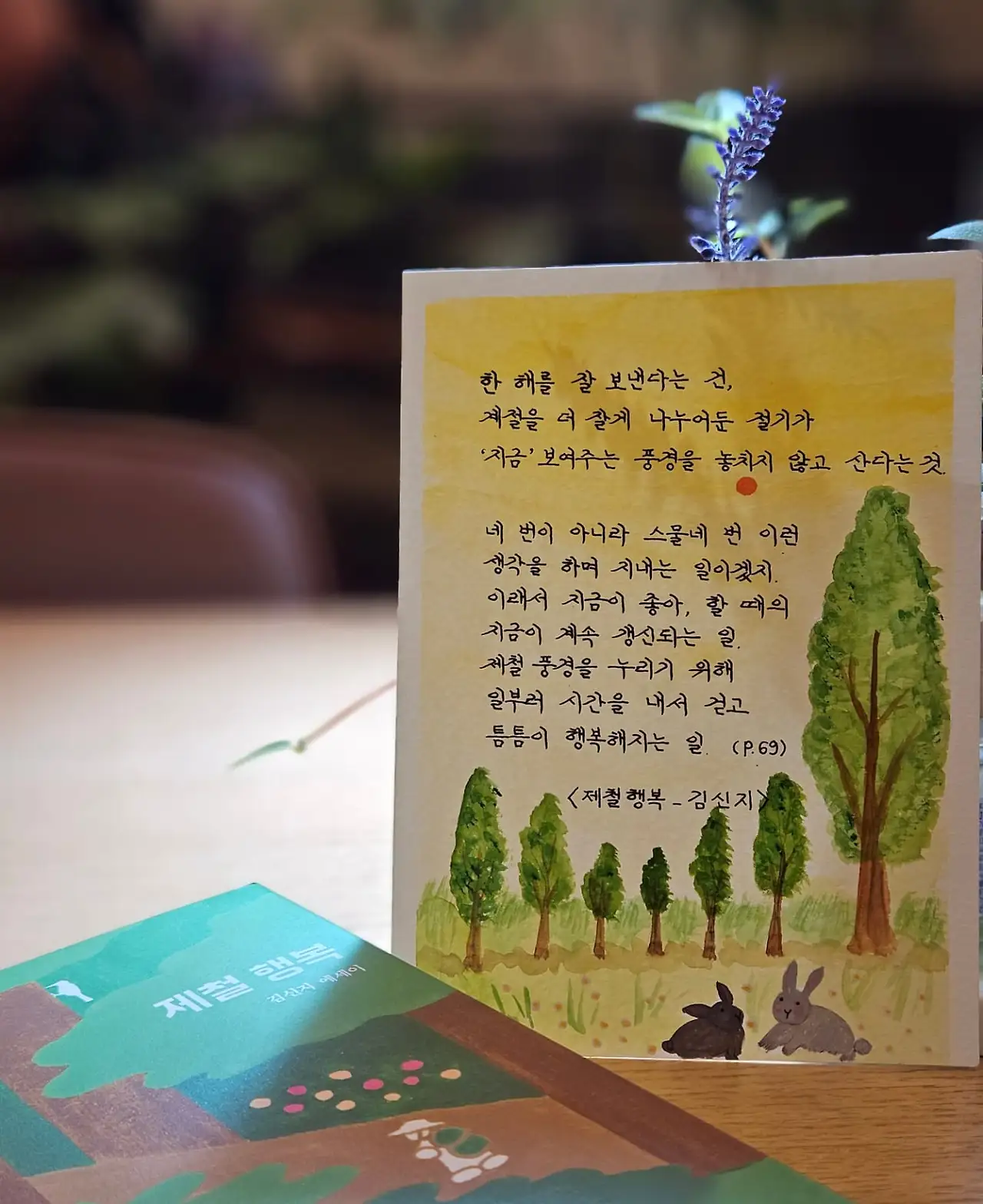 이 계절을 잘 누리고 있는가? 미루지 않고 챙겨야 할 행복을 잘 만끽하고 있는가? 김신지 작가의 <제철 행복>을 읽어보면, 우리 삶 속에 놓쳐서는 안 될 '제철의 기쁨'이 많다는 것을 깨닫게 된다.