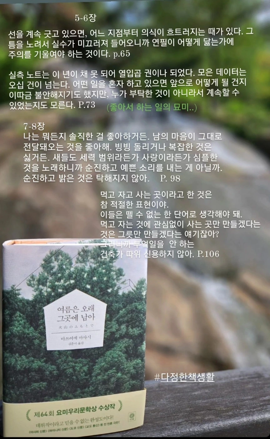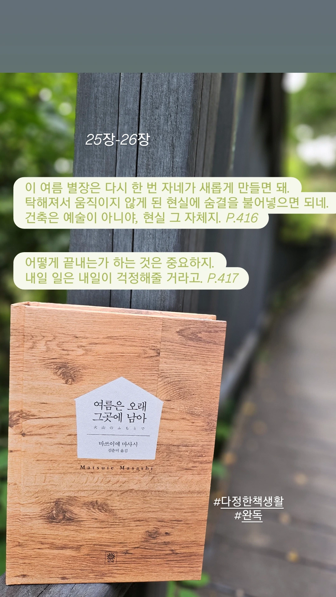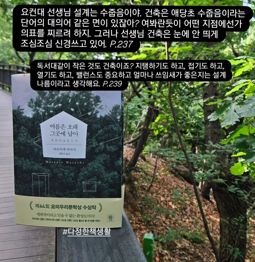완독을 끝낸 날은 늦은 밤이었고 세찬 빗줄기가 쏟아졌어요. 오히려 제 마음은 잠잠했어요. 이 책의 분위기에 사로잡혔으니까요. 여름에 잘 어울리는 책, 읽어 보시겠어요?