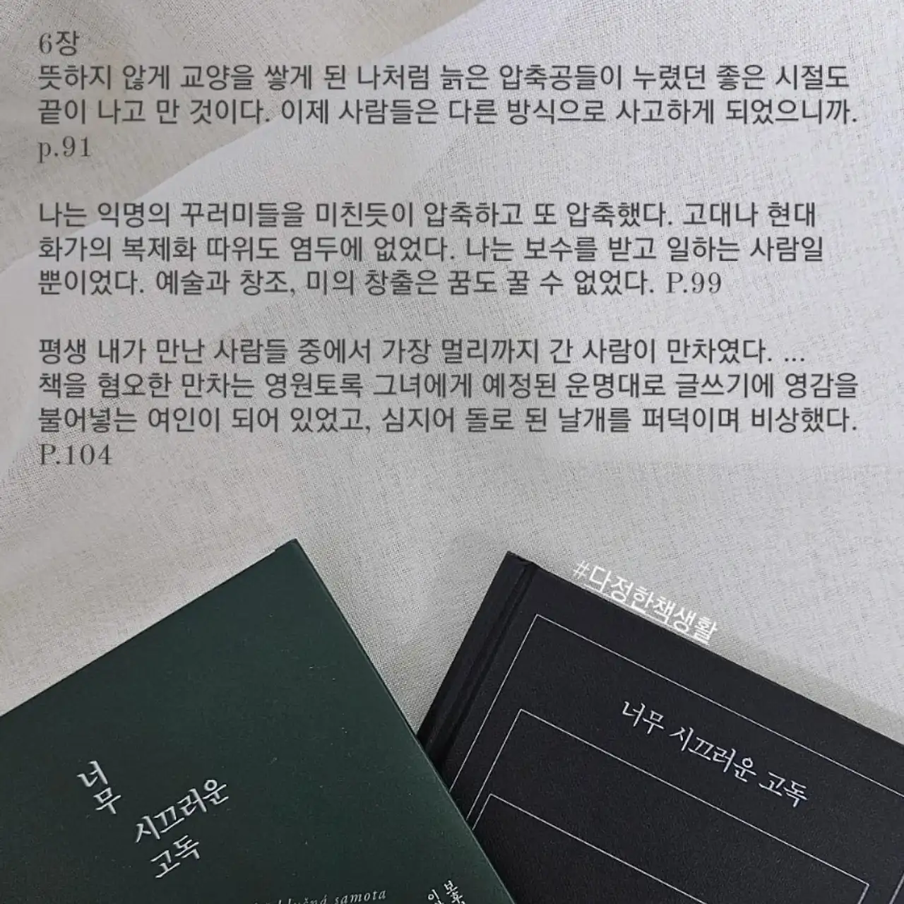 온라인 독서모임 '다정한 책생활'에서 함께 읽은 《너무 시끄러운 고독》이었다. 다정한 멤버분들의 감상평이 소중해서 함께 나누고 싶다.