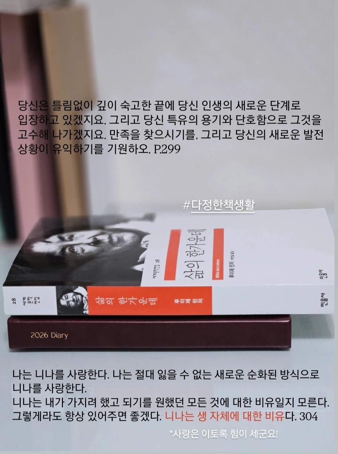 흔들리고 후회하고, 때로는 개운하지 않은 일들이 연속되더라도 그 모든 것을 끌어안은 채 끝까지 자기 삶을 사랑하려는 태도, 그것이 내가 삶의 한가운데서 발견한 품위이다.