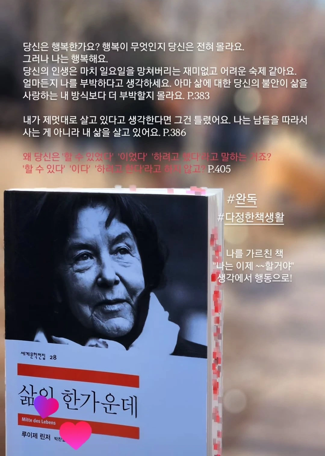 삶은 언제나 나를 중심에 세운다. 물러설 수도, 완전히 도망칠 수도 없는 자리에서 나는 선택하고 감당한다. 지난날을 돌아보면 불완전한 자화상이 확대되어 보인다. 바로 어제의 자신조차 마음에 들지 않는 순간이 어김없이 있다. 루이제 린저는 어느 정도 나이가 들면 철학적 지혜가 생긴다고 했지만, 살아보니 인생은 여전히 예측할 수 없고 여전히 미완이다. 그렇기에 나는 나의 자리에서 분투한다. 불완전한 채로 버티고 선택하며 책임지기 위해.