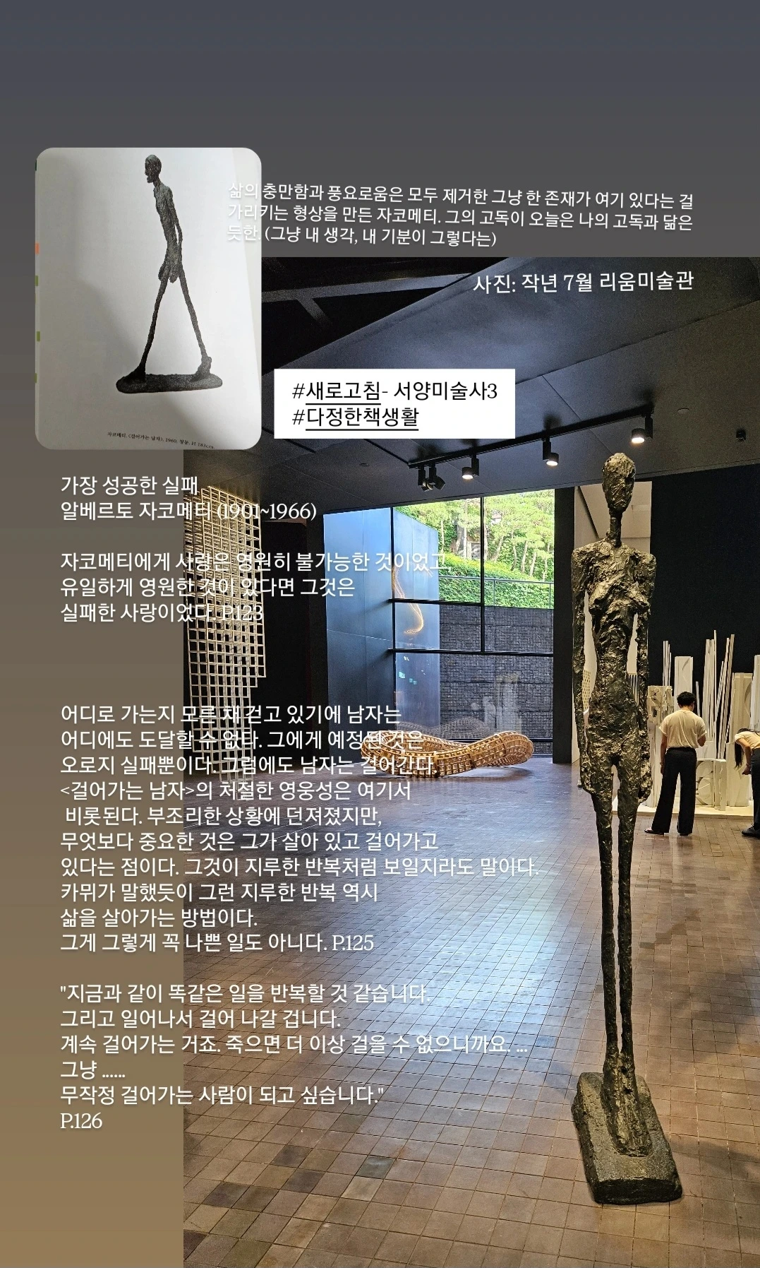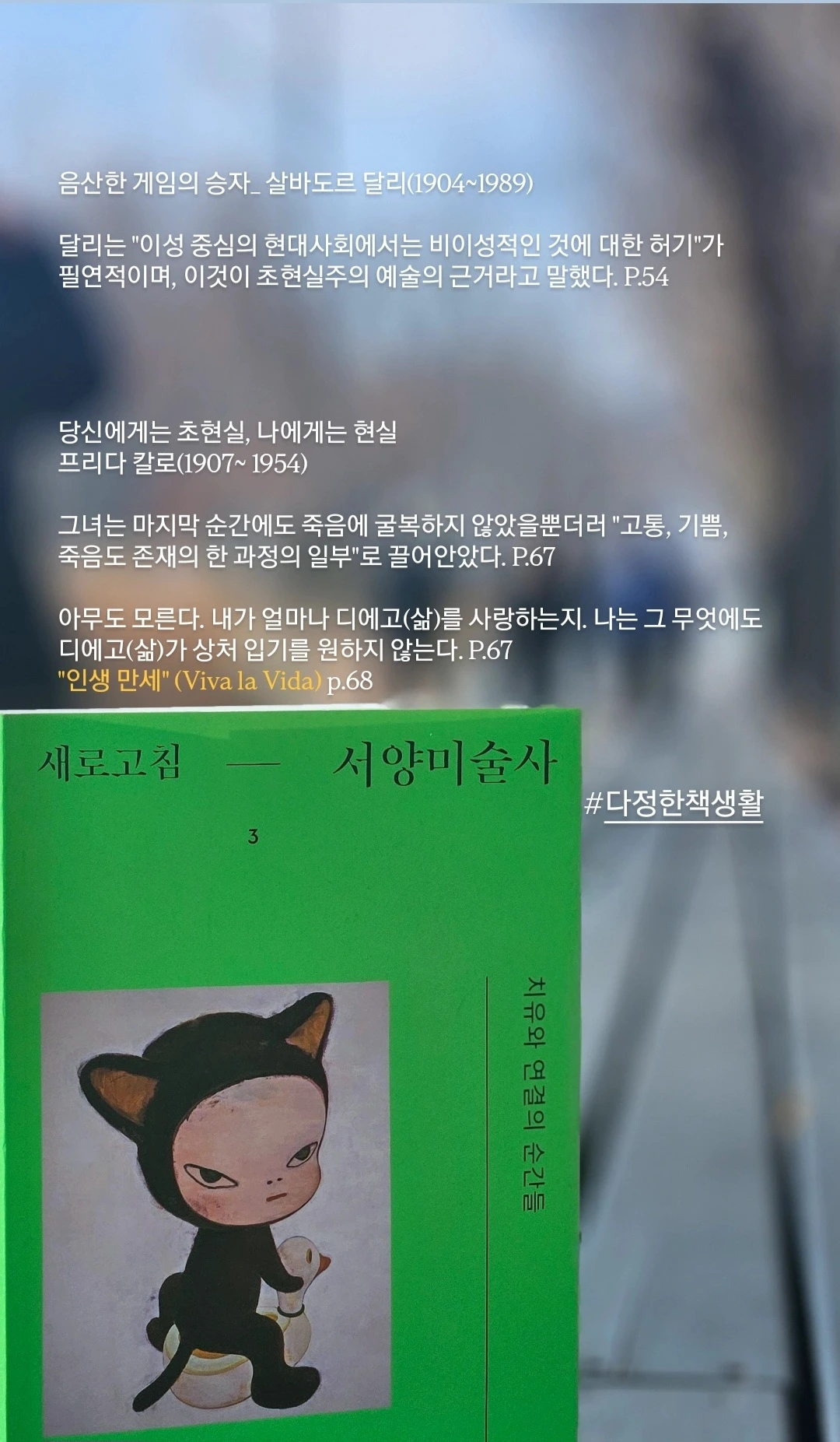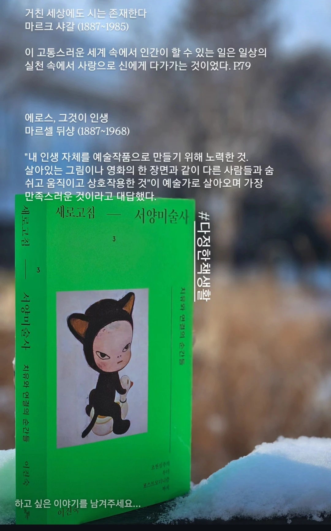 이진숙 작가의 『새로고침 - 서양미술사 3』은 미술의 역사를 이야기하고 있지만, 읽다 보면 철학책을 보는 듯한 기분이 든다. 무엇 하나 제대로 해내지 못하는 듯한 마음으로 반복적인 하루를 살아가는 내게 그럼에도 일상에서 ‘사랑’으로 모든 것에 다가가라는 샤갈의 메시지는 큰 희망으로 다가왔다.