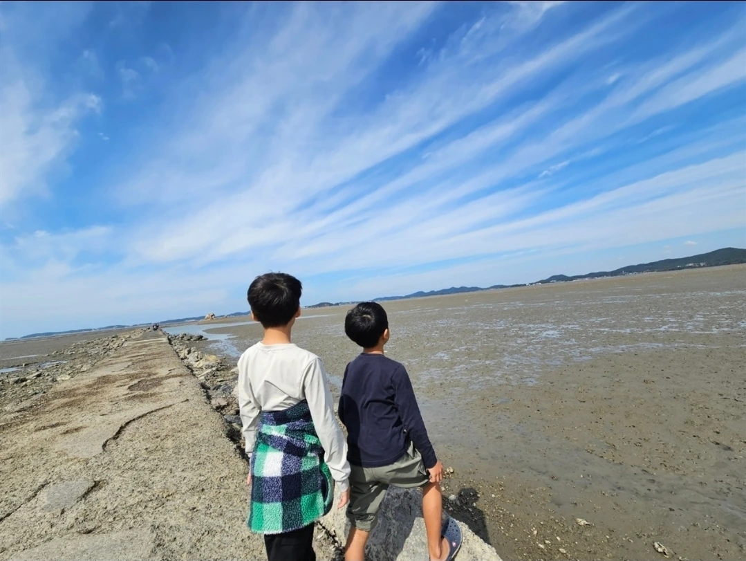 우리가 썰물 때 도착한 일은 뜻하지 않게 만난 횡재와 같은 일이었다. 눈 앞에 펼쳐진 갯벌 풍경에 우리 가족은 평소 볼 수 없는 진귀한 모습이라며 즐거워했다. 광활한 갯벌의 한 가운데에 닦아 놓은 길은 썰물 때에만 드러나는 길이었다. 그 매력적인 길의 유혹을 뿌리칠 수 없어 발걸음을 옮겼다.
