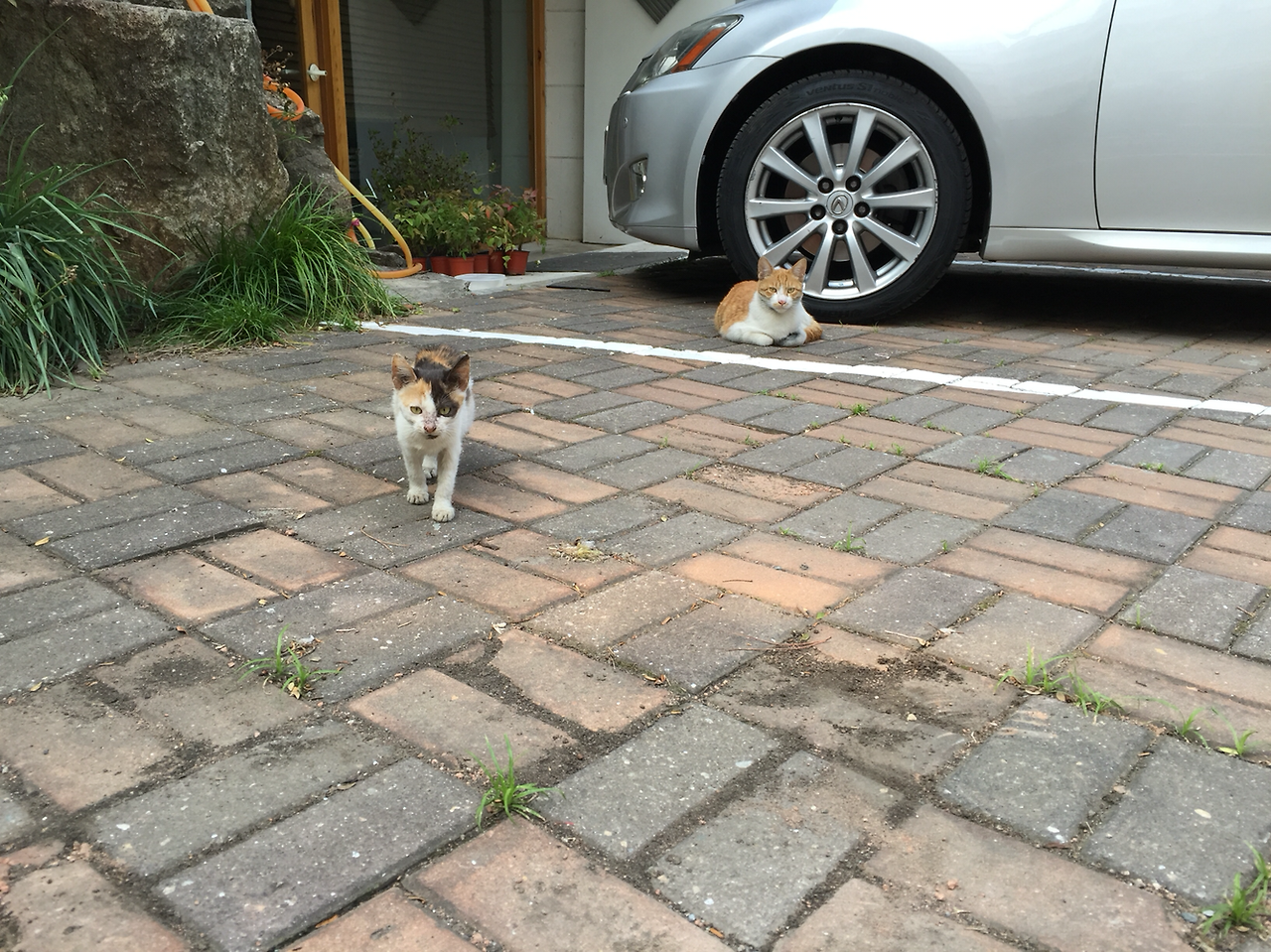 지독스럽게도 무더웠던 여름날, 골목길에 주차된 자동차 아래에 조용히 쉬고 있는 얼룩이에게 덜룩이가 찾아와 참견을 한다. 뭐라고 뭐라고 종알종알 말을 걸지만 그늘 밑에 앉은 얼룩이는 꼼짝도 않는다. 나는 얼룩이 편을 들어주었다. 올여름은 끔찍하게도 더웠지 않은가. 집 나가면 고생이니 꼼짝 않고 그늘 아래 있는 편을 택하라고 응원해 주었다. 그래도 서로 안부를 물으러 오는 걸 보니 저들 얼룩덜룩은 사이가 좋은가 보다.