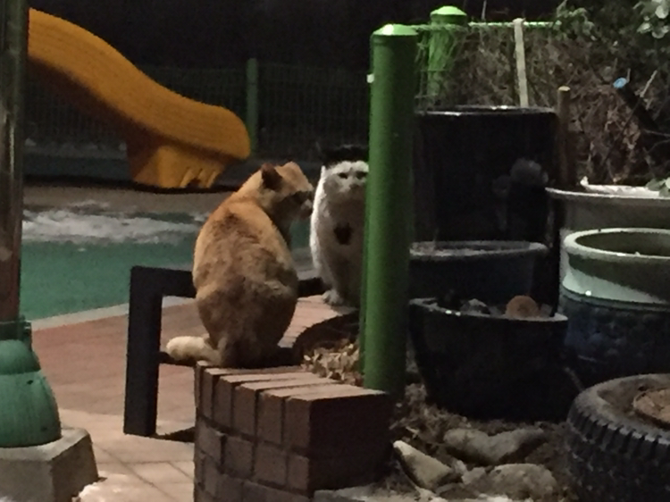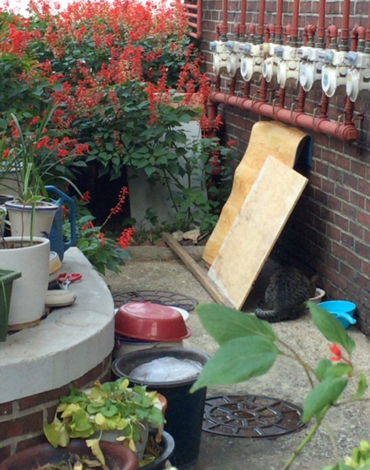 동네에서 마음씨 좋은 어느 분이 이 골목 고양이들 먹으라고 자기 집 뒷마당에 사료를 부어놓은 밥그릇도 놔두고, 눈과 비를 피하라고 지붕도 만들어 놓으셨다. 이곳에 이들의 휴식처가 있다는 것은 우연히 골목을 지나다 이집 뒷마당 난간 사이로 고양이가 드나드는 걸 보고 조용히 따라갔다가 알게 되었다. 동네 고양이를 구경하고 싶다면 늦은 밤 놀이터로 찾아가거나 맘씨 좋은 이분의 뒷마당으로 찾아가면 된다. 뒷마당에서 대충 자라고 있는 화분들과 그 사이로 무심하게 던져놓은 가위를 보면서 나도 모르게 입가에 미소가 번졌다. 완벽하고 유별나진 않지만 나름은 정을 가지고 무심한 듯 세심하게 살펴주는 화분들처럼 고양이들에게도 나름의 정성으로 잠시 쉬어갈 곳을 만들어주셨나 보다. 대충 기울여 놓은 판자로 지붕을 제공하고 흰색 바가지엔 사료를, 파란색 바가지엔 물을 담아놓는다. 뒷마당 안쪽 깊숙이 들여다보니 꽃나무 아래로 동굴도 만들어 놨다. 저곳은 수면실인가 보다. 얼굴을 한번도 본적이 없지만 분명 따뜻하고 정이 많은 사람일 것 같다. 아직도 이곳의 정보를 모르는 고양이가 있다면 배고프고 외롭고 쓸쓸할 때쯤 이 곳으로 가보라고 말해주고 싶다. 도심속 야생의 생활고를 극복하기가 아주 벅찰테지만 가끔은 이렇게 쉬어갈 곳을 마련해주는 분들도 계시니 힘내서 살아가라고 응원해본다.