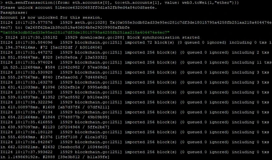 이렇게 생성한 이더를 다른 계좌에 보내봤다.