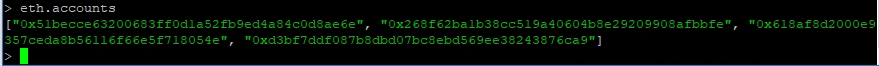 테스트를 위해 4개의 계좌를 생성했다. 아래는 생성된 계좌를 확인하는 화면이다.