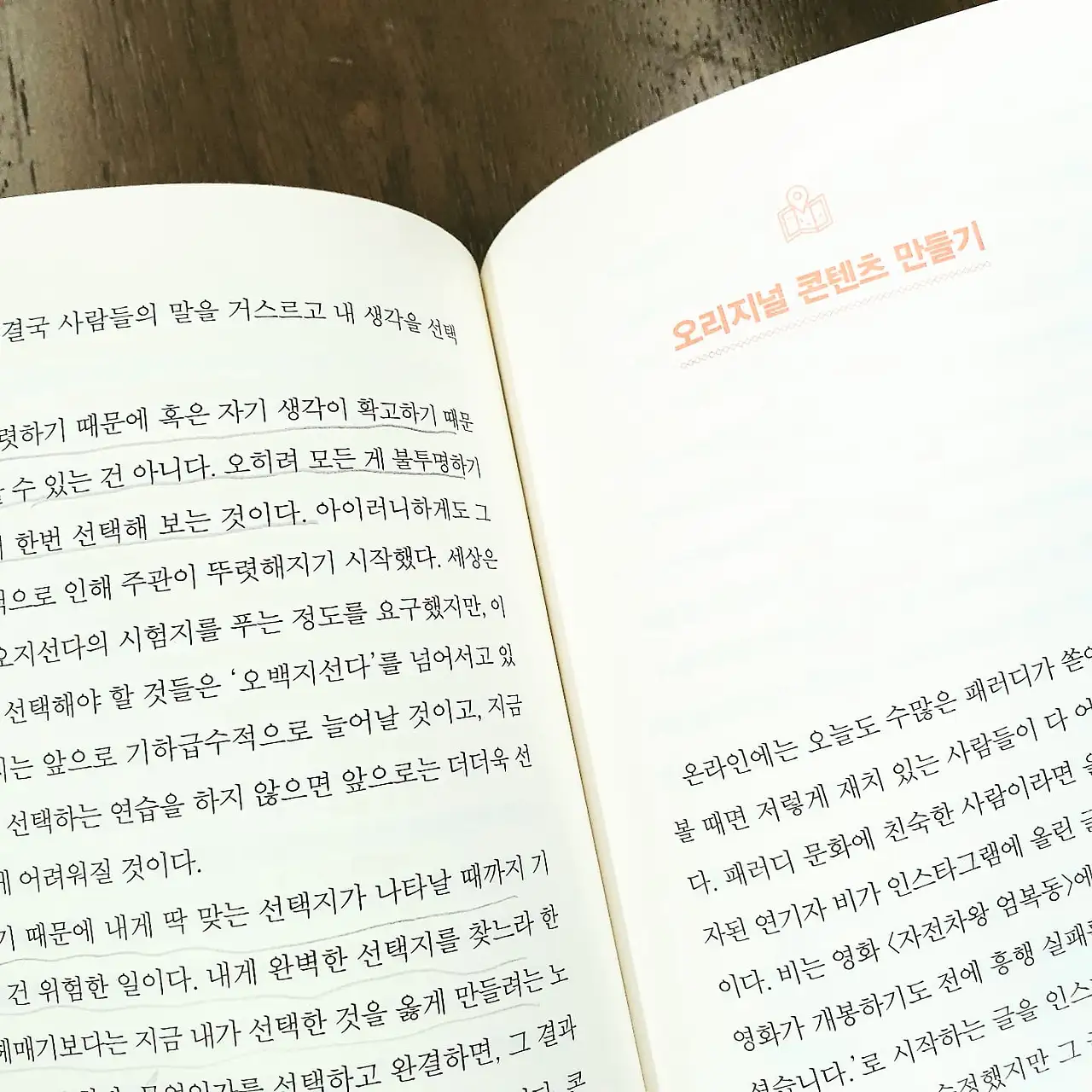 뿐만 아니라 경제적 보상만 바라보고 콘텐츠를 만드는 것 역시 스스로의 발목을 잡는 일이 될 수 있습니다. 콘텐츠를 생산하는 일과 그것을 통해 생긴 즐거운 변화를 경험하는 것, 그것이 콘텐츠 생산자가 갖추어야 할 마음의 자세입니다.
