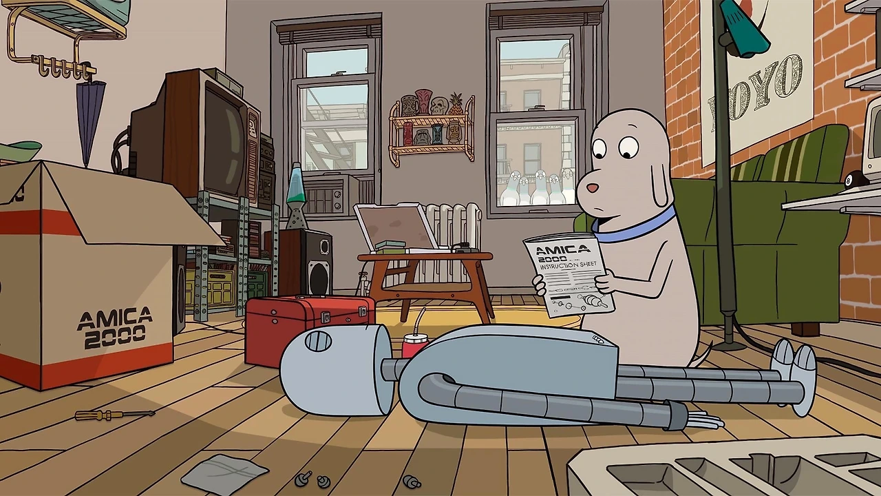 작가 사라 바론이 창조하고 감독 파블로 베르헤르가 다듬은 <로봇 드림>은 이 사랑의 한계를 직면하기 위한 작품 같다. 원작 그래픽노블에서 단 2쪽으로 개와 로봇의 첫 만남(주문서 작성-택배 도착-조립-탄생)을 다루는 것과 달리 애니메이션 영화에서는 꽤나 공들인 도입부로 도그가 로봇을 ‘사게’ 된 배경을 제시한다. 도그는 외롭다. 늘 혼자 먹고 보고 잠드는 도그는 사무치게 외롭고, 함께인 동물들을 질투하며, 우울할 정도로 삶을 지겨워한다. 도그는 자기 삶을 의미 있게 만들어줄 타인의 시선, 손길, 인정, 교감을 필요로 한다. 그래서 도그는 자기 친구, 애인, 가족이 되어줄 로봇을 구한다.