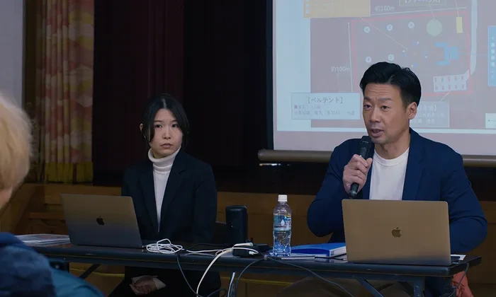 유보적 판단의 빈칸을 먼저 채우는 것은 하마구치의 장기인 사람의 이면에 대한 섬세한 응시다. 무지하고 한가로운 발화로 분노를 사며 등장한 도시의 엔터회사 직원 다카하시와 마유즈미에겐 (역시 하마구치의 장기인) ‘차 안에서의 대화’라는 기회가 주어진다. “생각하시는 것만큼 주민들은 바보가 아녜요”라고 마을 편을 들며 거래처와 사장에게 반격한 젊은 여성이나, 그저 욕심 없이 흘러오다 보니 여기까지 와버렸을 뿐인 장년의 남성이 대화하는 장면에서 우리가 발견하는 건 그 어떤 악의도 없는 평범한 사람들일 뿐이다. 현 직업에 대해 “생각한대로 쓰레기 집합소”라고 신랄한 평을 남기고 그런 업계에 “변화를 주려고” 진입했다는 마유즈미의 굳건함은 관객이 동화하기 쉬운 지대다. 그들은 때론 마을에 감화되고 마을을 재발견하며 마을과 자신의 삶을 겹쳐보려고 하기도 한다.